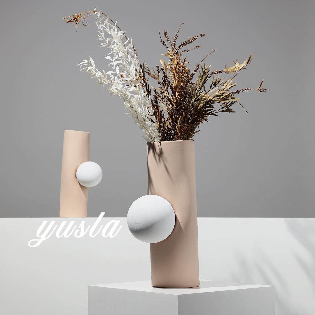 奶油法式客厅茶几插干花瓶餐厅吧台花器玄关柜样板间摆件软装饰品
