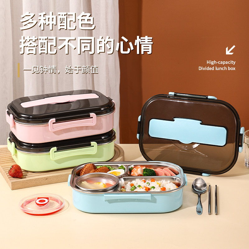 学生餐盒304不锈钢上班族保温分隔便携式饭盒盖子塑料外壳单卖