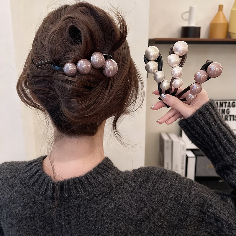 简约气质珍珠发夹女后脑勺高级感一字扭扭夹大号盘发抓夹2025新款