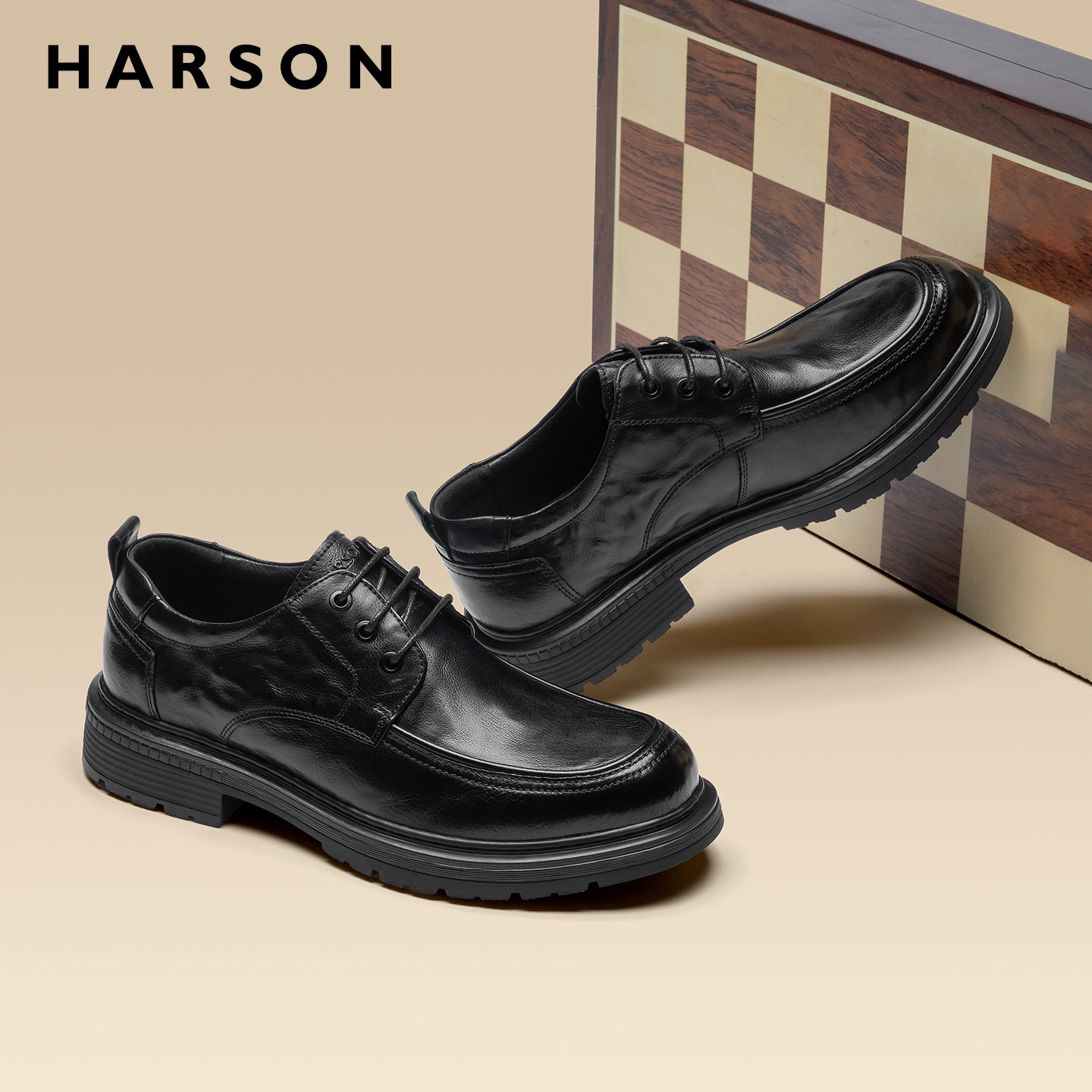 哈森男鞋春新款商务休闲皮鞋男士真皮软底高档皮鞋牛皮大头皮鞋男