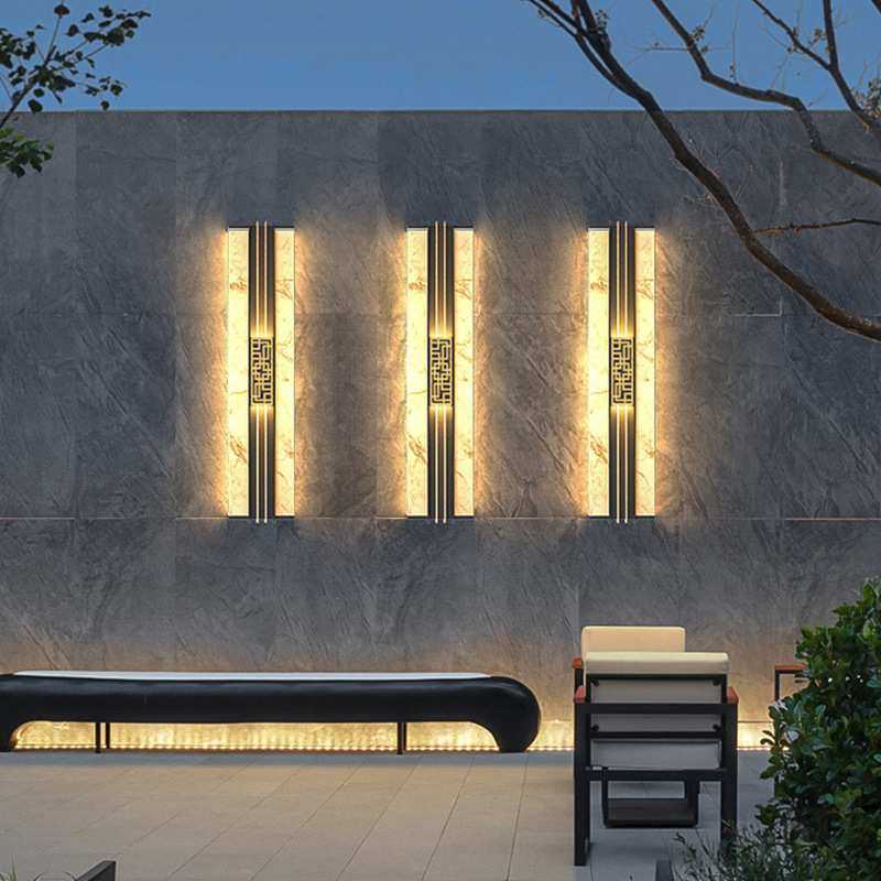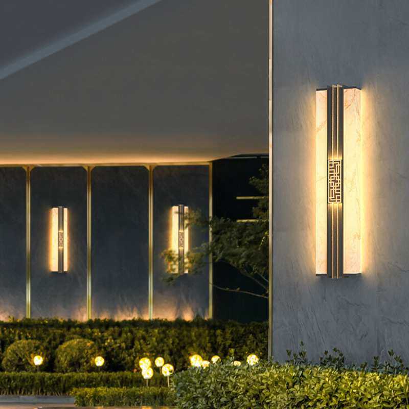 别墅户外壁灯大门两侧壁灯太阳能新中式仿云石别墅外墙灯门柱壁灯