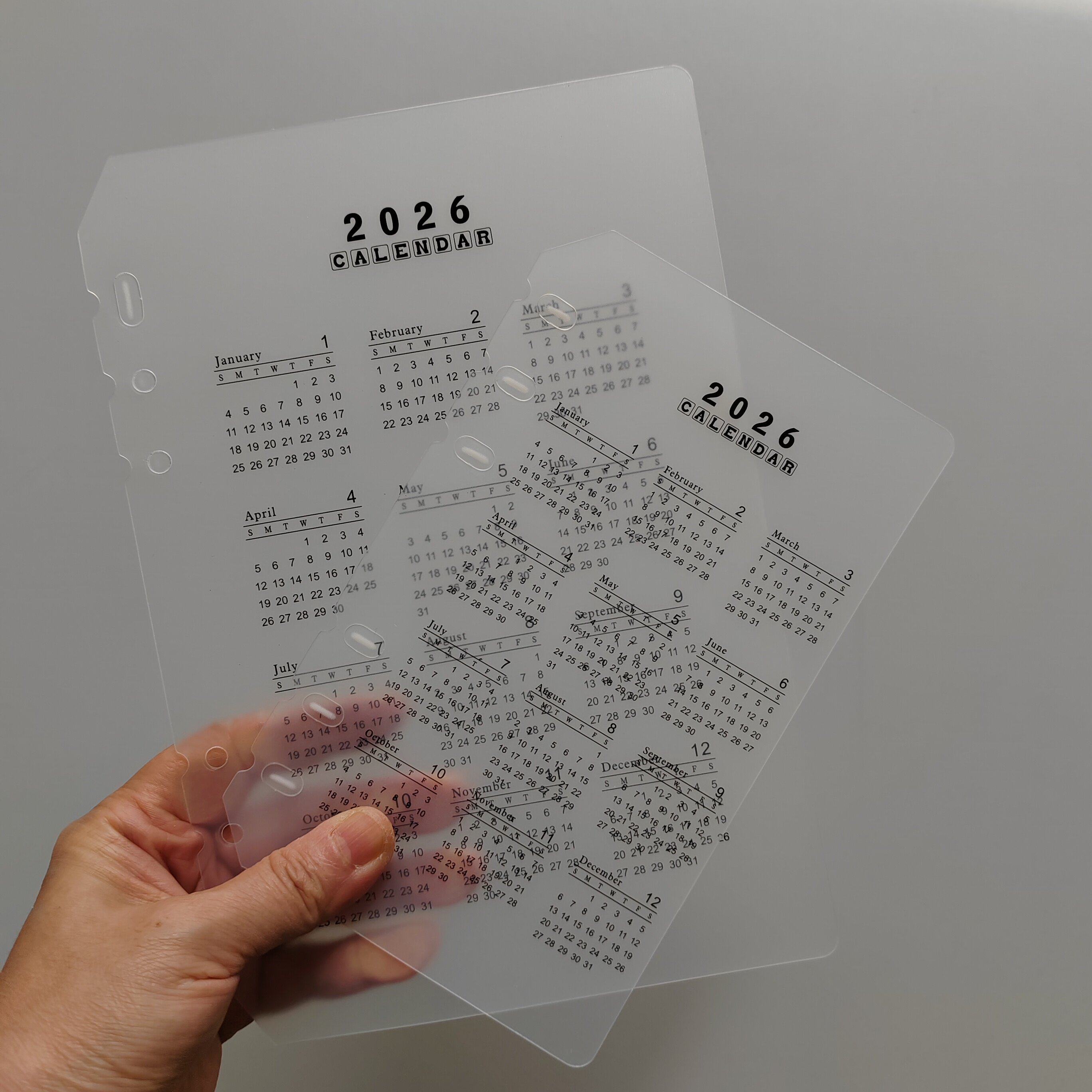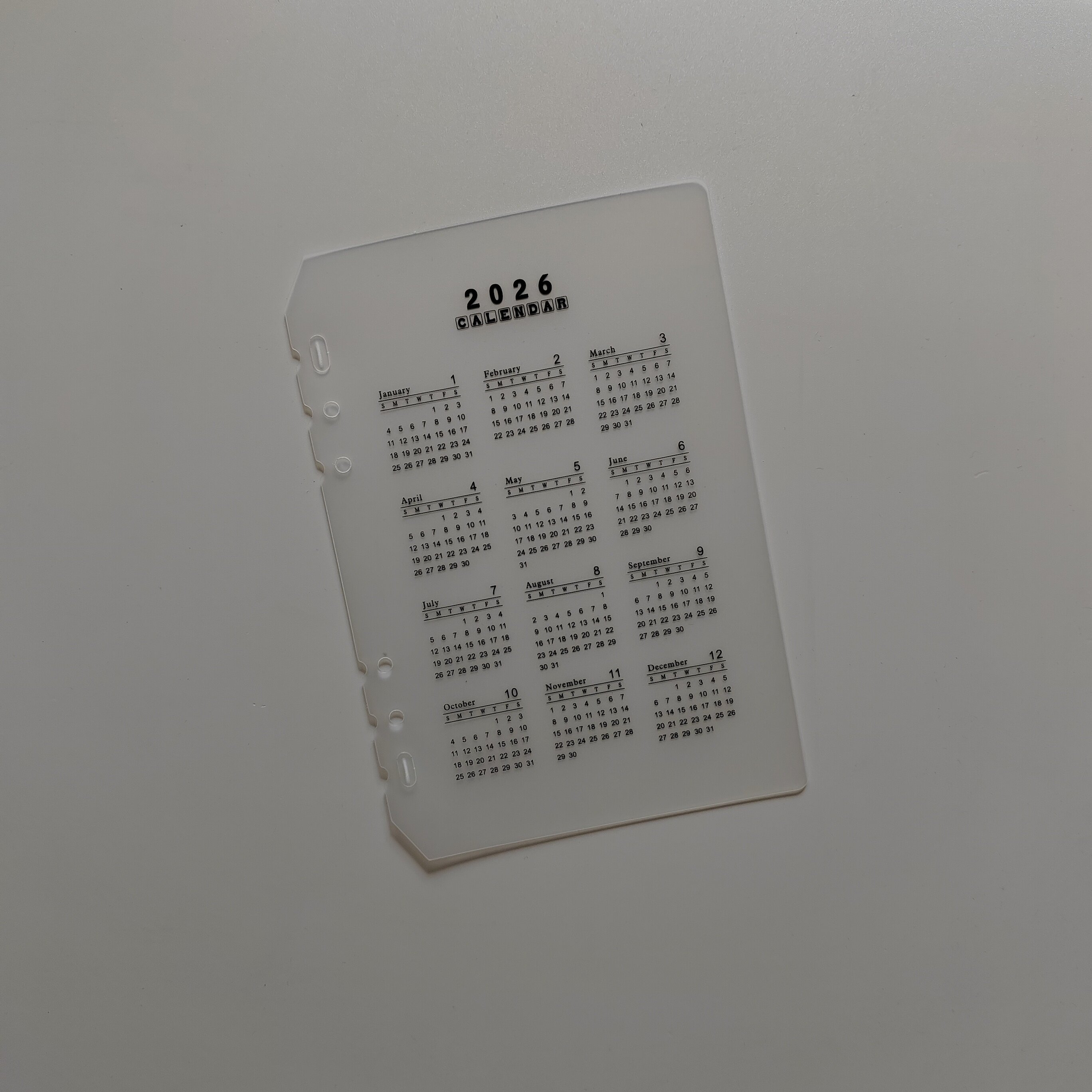 2026年度A6-A5年历半透明防水隔板日月历卡计划板手帐索引封面页