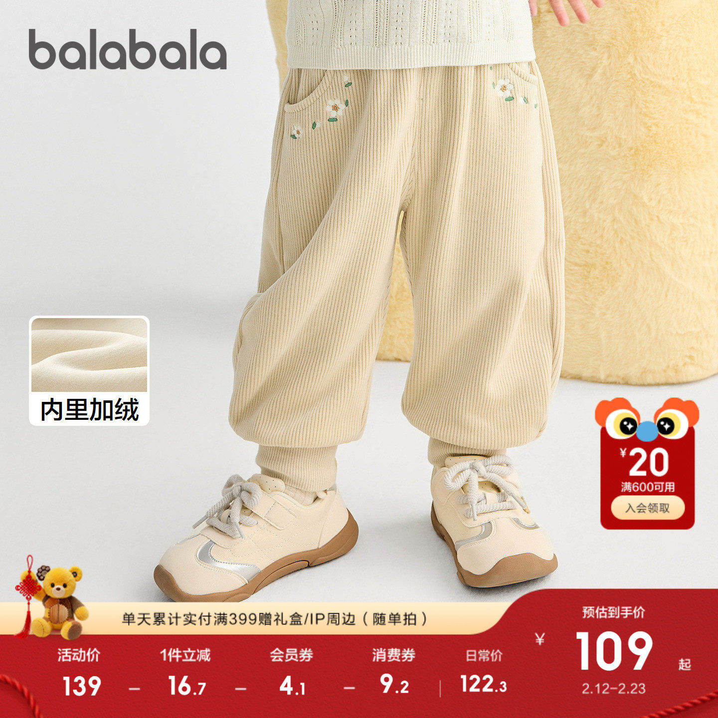 【商场同款】巴拉巴拉宝宝长裤加绒加厚男女儿童裤子2025冬装新款