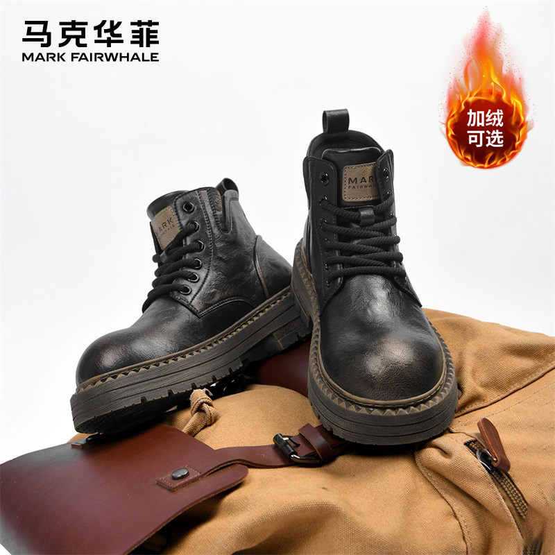 马克华菲马丁靴男2025新款冬季加绒雪地靴男麟威男鞋靴子男款皮靴