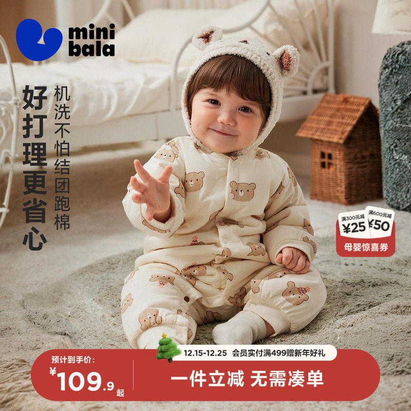 【纯棉】迷你巴拉巴拉男女童宝宝抗湿冷保暖棉服连体衣爬服冬新款