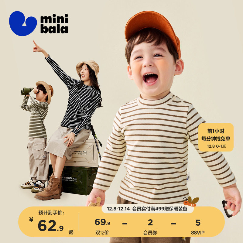 迷你巴拉巴拉男女童亲子长袖T恤2025秋冬季儿童半高领百搭打底衫