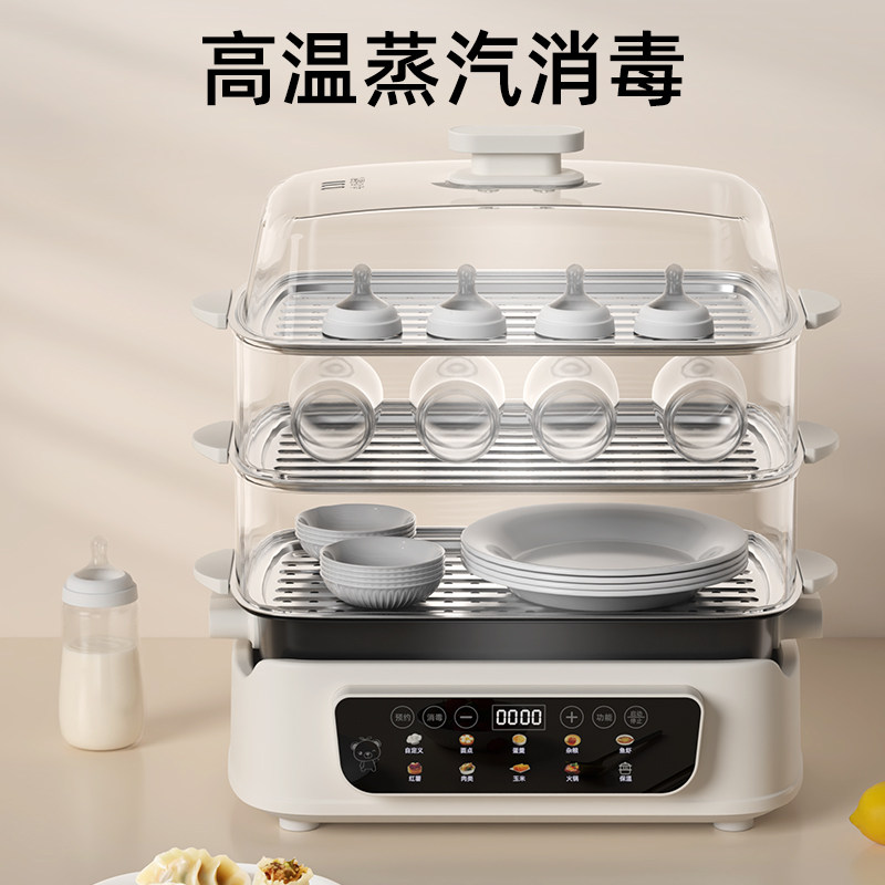 小贝熊电蒸锅电火锅分体式可拆洗大容量蒸锅炖蒸煮多功能电煮锅