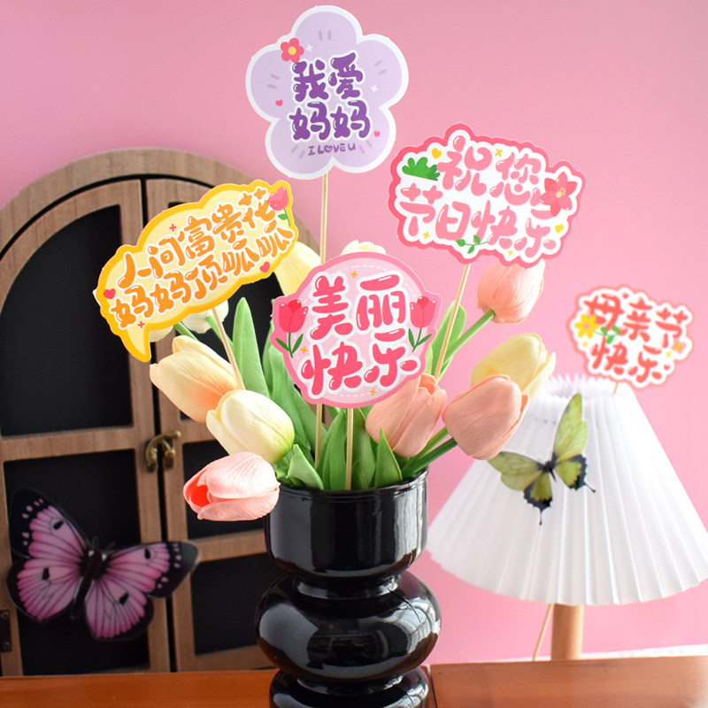 2025年新款母亲节快乐送仙女妈妈鲜花束插卡祝福语文字卡片纸女神礼品女王小礼物装饰氛围感贺卡花艺花店资材