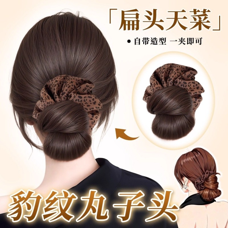 低扎丸子头假发女抓夹豹纹花苞头氛围感蓬松后脑勺盘发丸子假发包