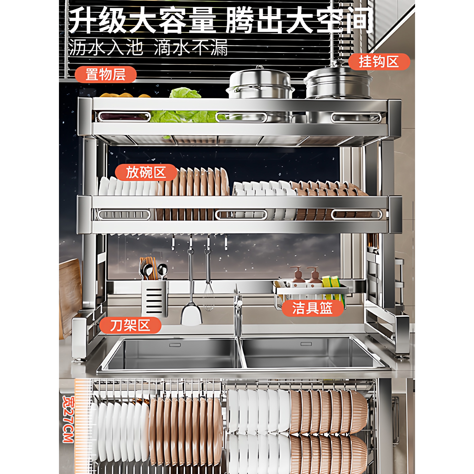 厨房水槽置物架不锈钢碗碟收纳水池洗碗多功能放碗盘沥水碗架整洁