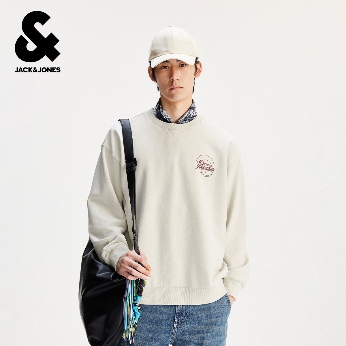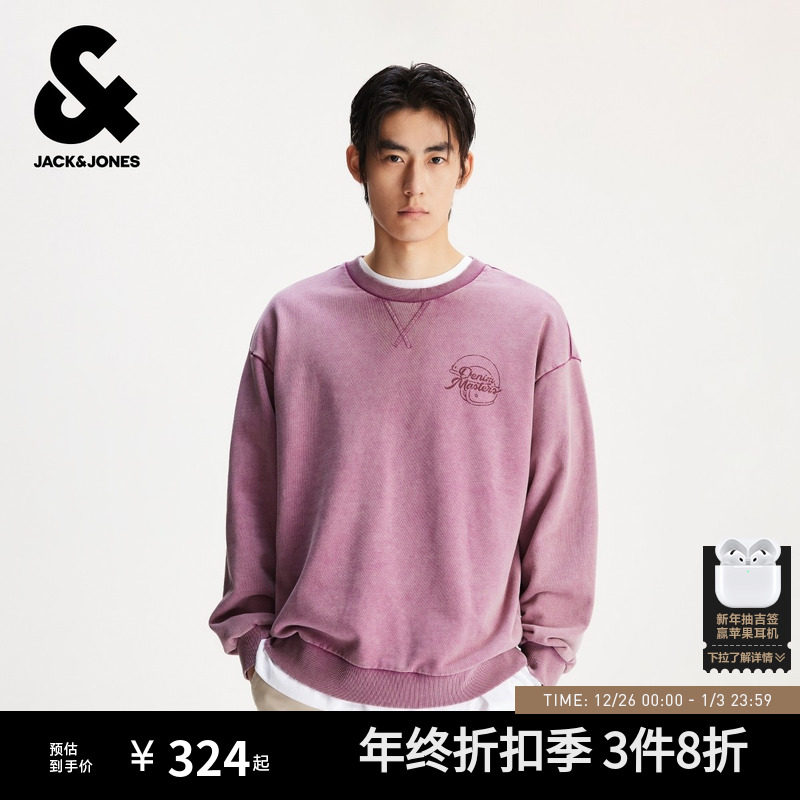 杰克琼斯男装秋冬新款时尚字母印花纯棉舒适日常休闲宽松圆领卫衣