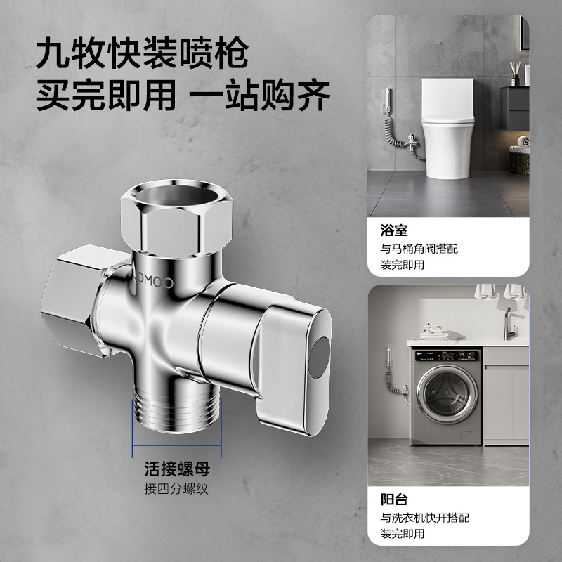 九牧智能马桶伴侣冲洗喷枪一进二出角阀喷头高压增压妇洗厕所水枪