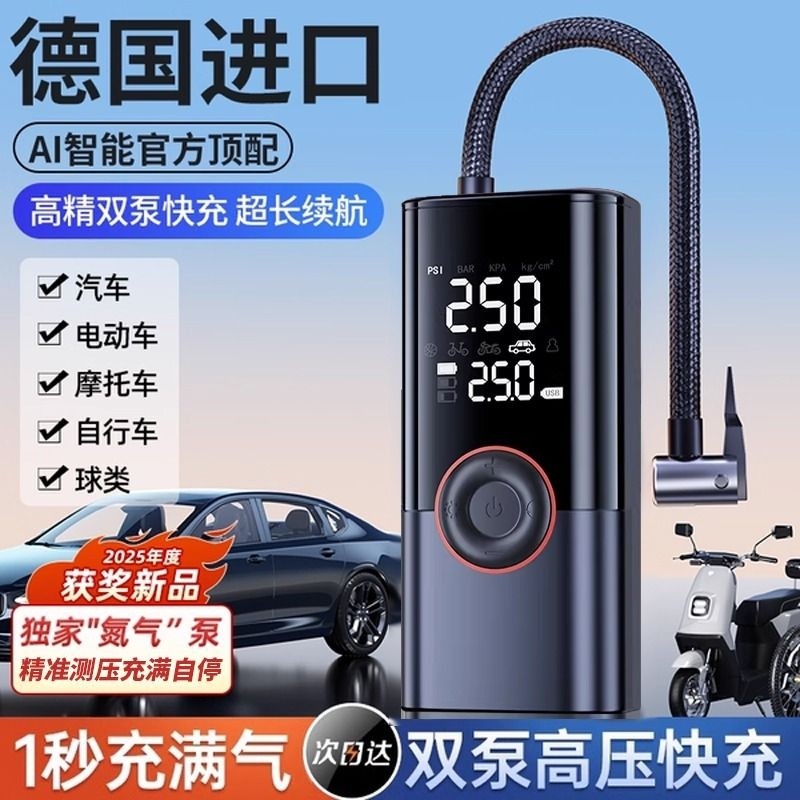 车载充气泵便携式汽车用电动打气筒氮气轮胎带测胎压小型自动加气