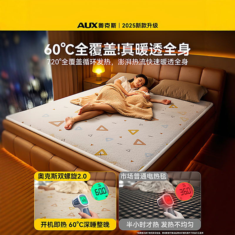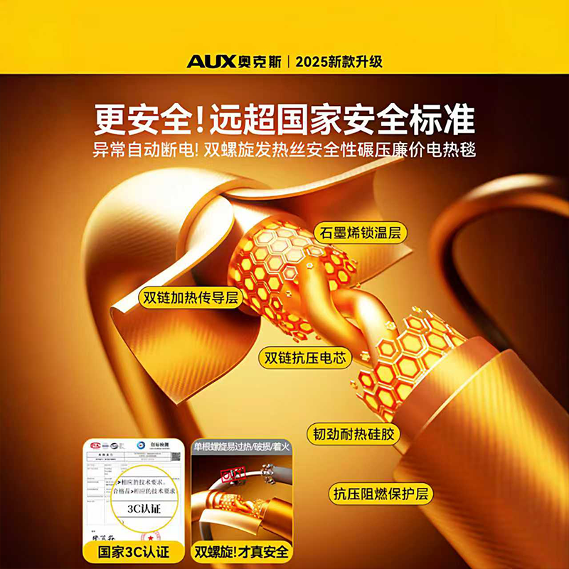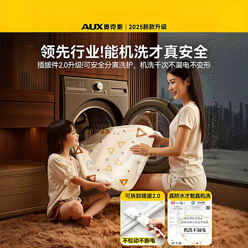 奥克斯可机洗石墨烯电热毯2025新款单双人双控电褥子调温宿舍家用