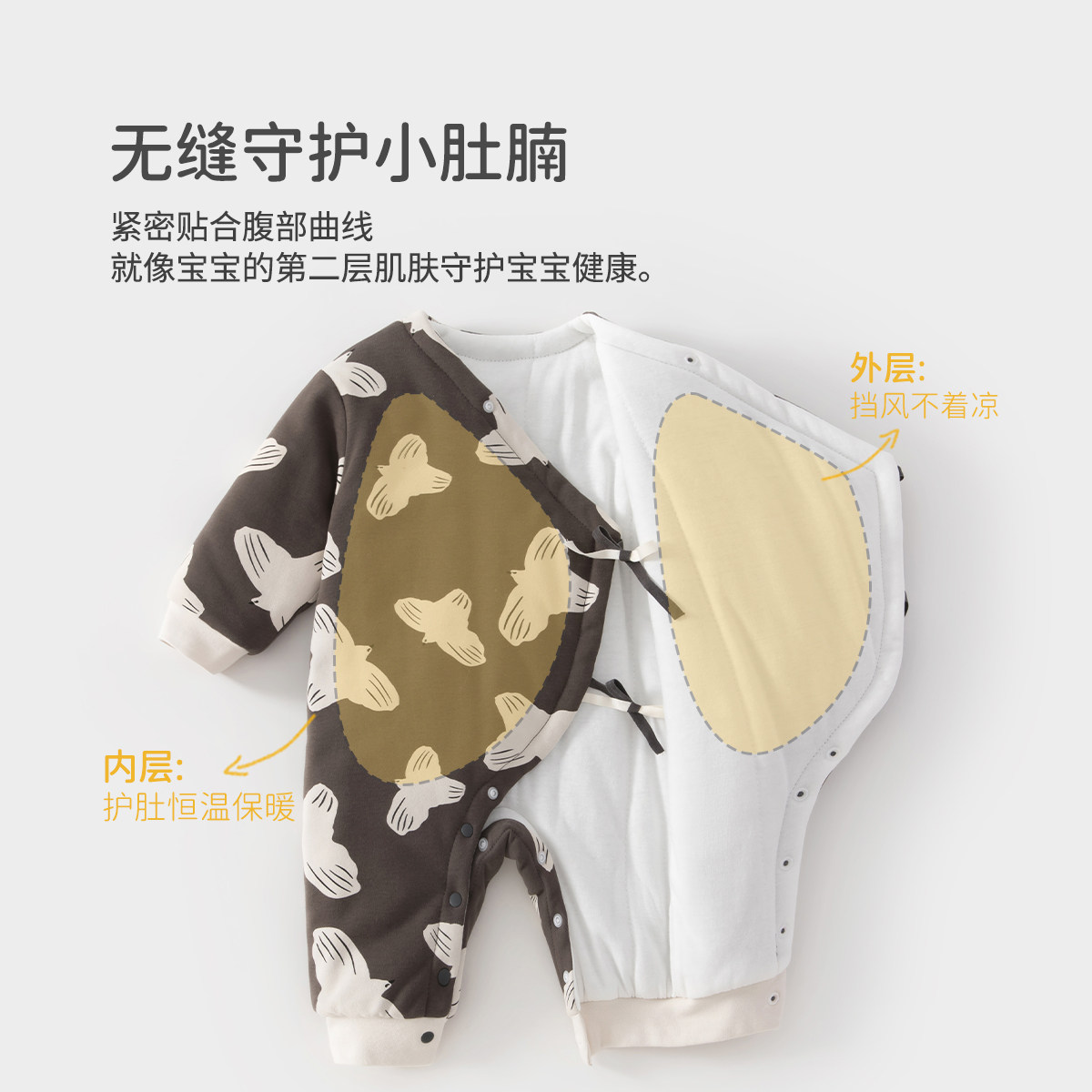 贝肽斯婴儿薄夹棉连体衣冬装外出新生幼儿宝宝衣服保暖空气棉睡衣