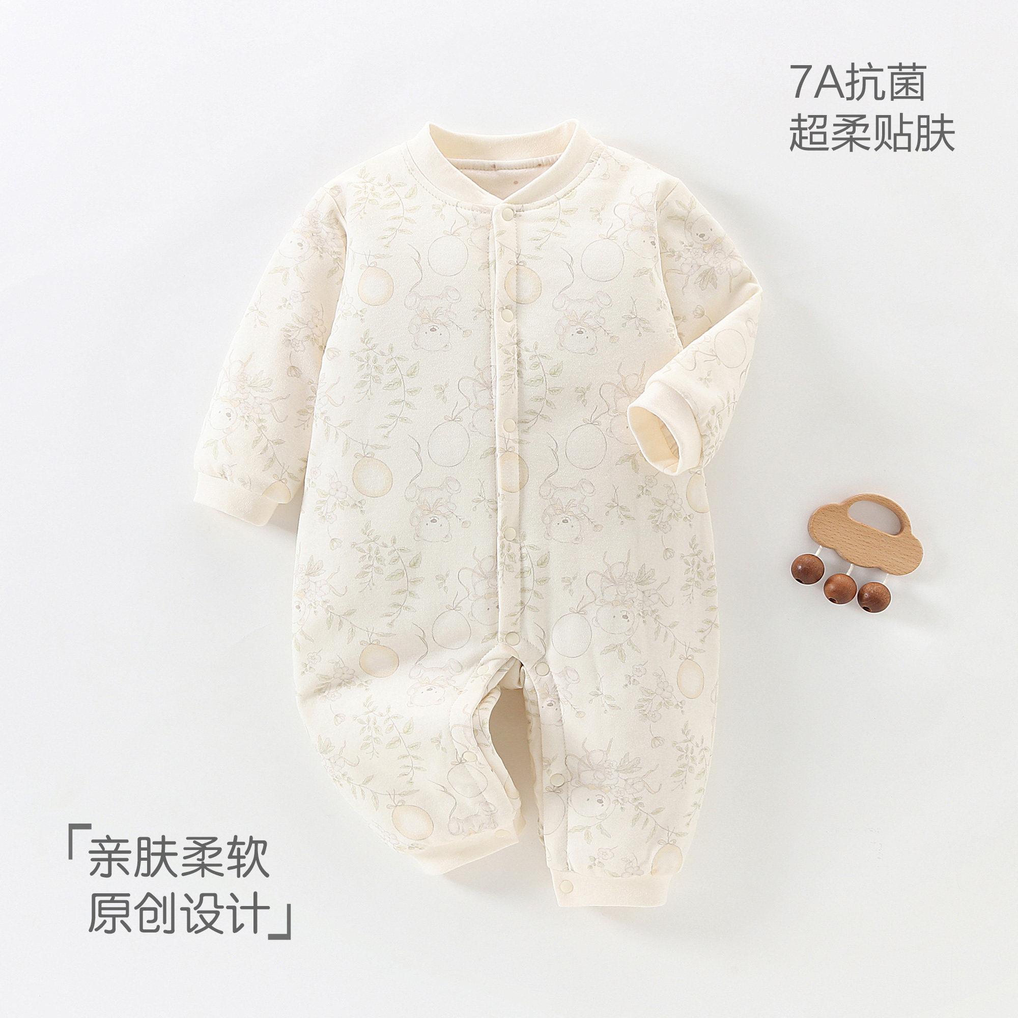 婧麒新生儿婴儿衣服秋冬夹棉满月纯棉初生宝宝秋装连体衣a类爬服