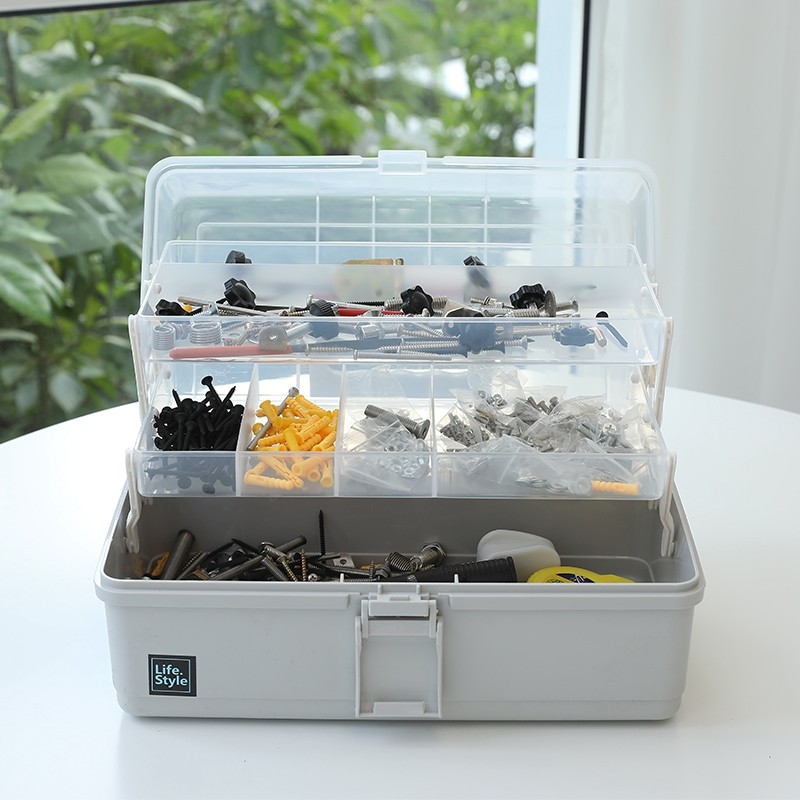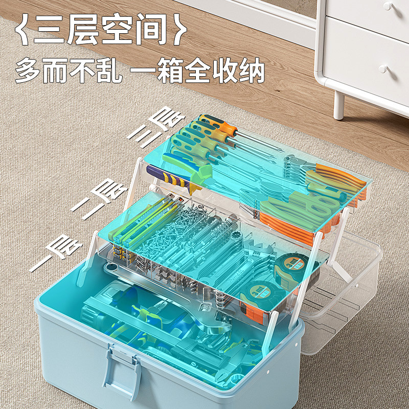 五金工具箱家用螺丝钉子收纳盒零件杂物分类折叠整理箱多功能手提