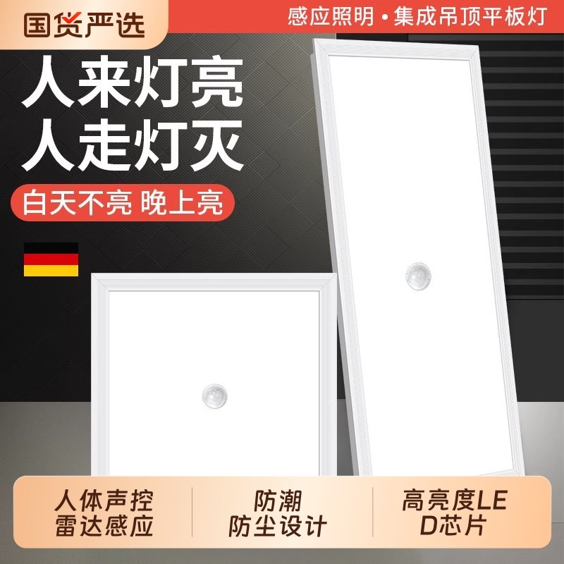 led集成吊顶智能面板灯卫生间过道雷达人体感应铝扣板声控平板