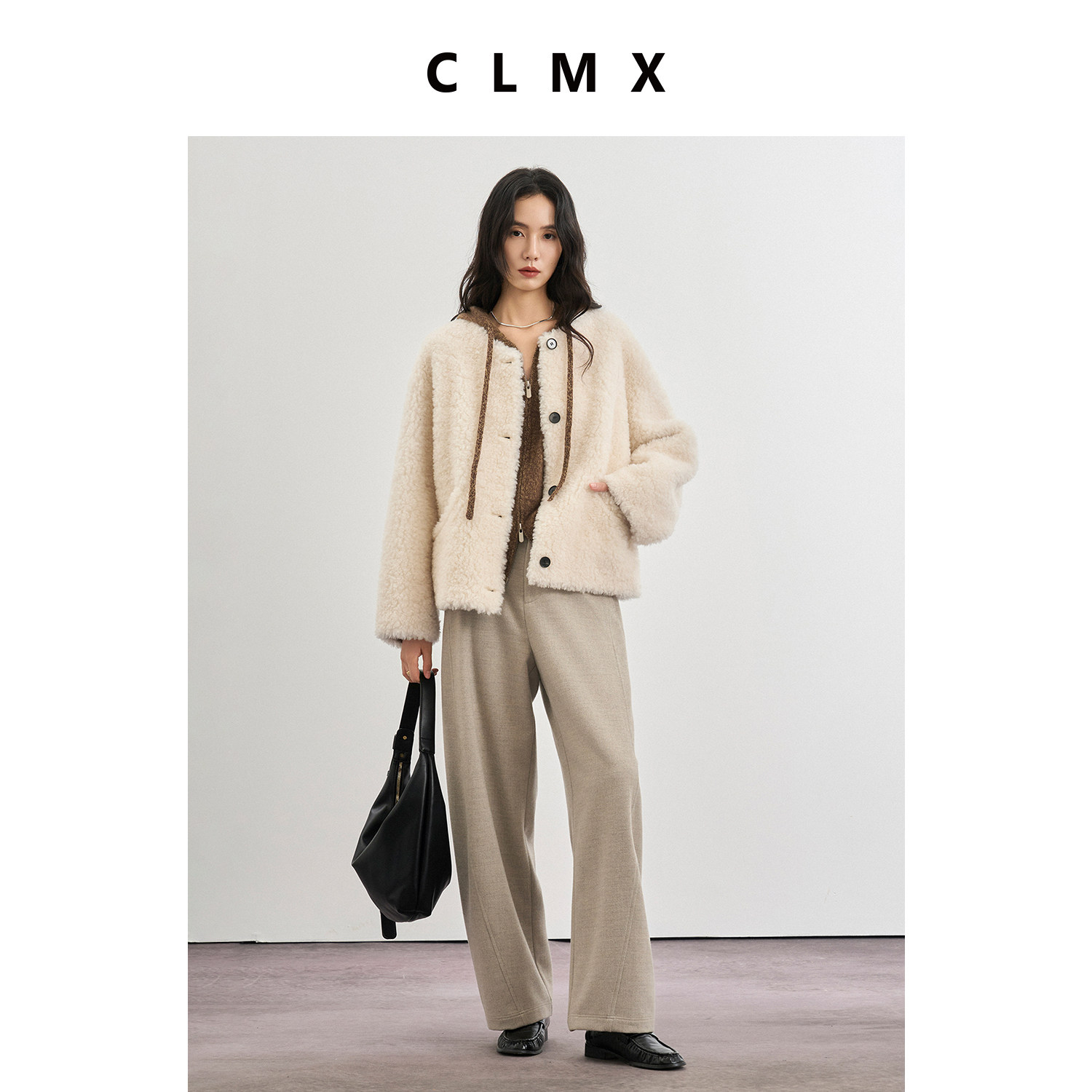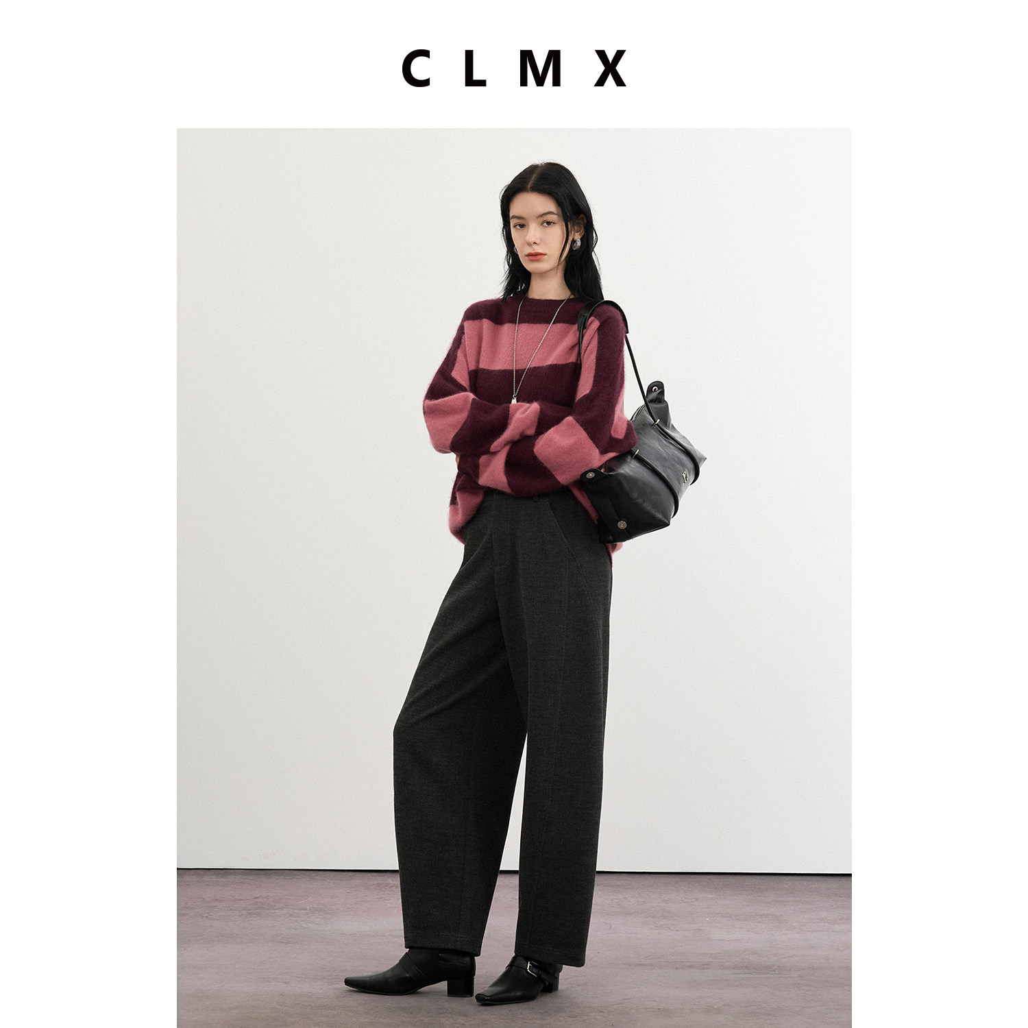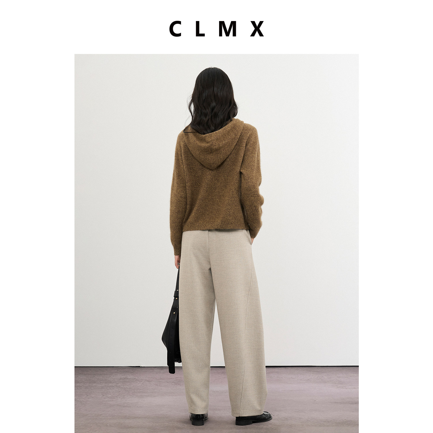 CLMX后腰橡筋微香蕉直筒休闲裤羊毛混纺双面布面料秋冬通勤长裤女