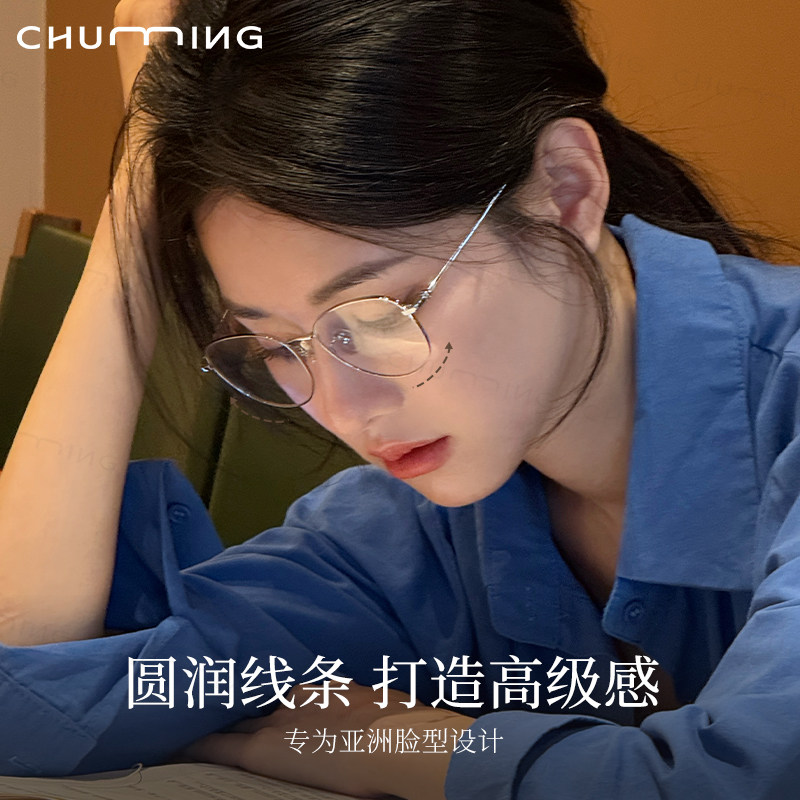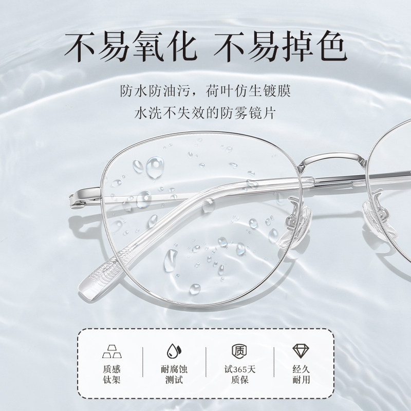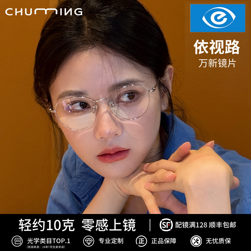 纯钛圆框近视眼镜蔡司防蓝光女可配度数素颜文艺细边眼镜框镜架男