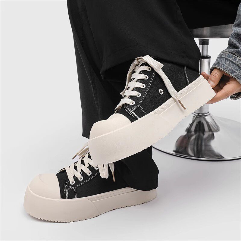 朱正延王琳凯同款大头奶香底板鞋高街厚底帆布鞋潮男黑色休闲男鞋