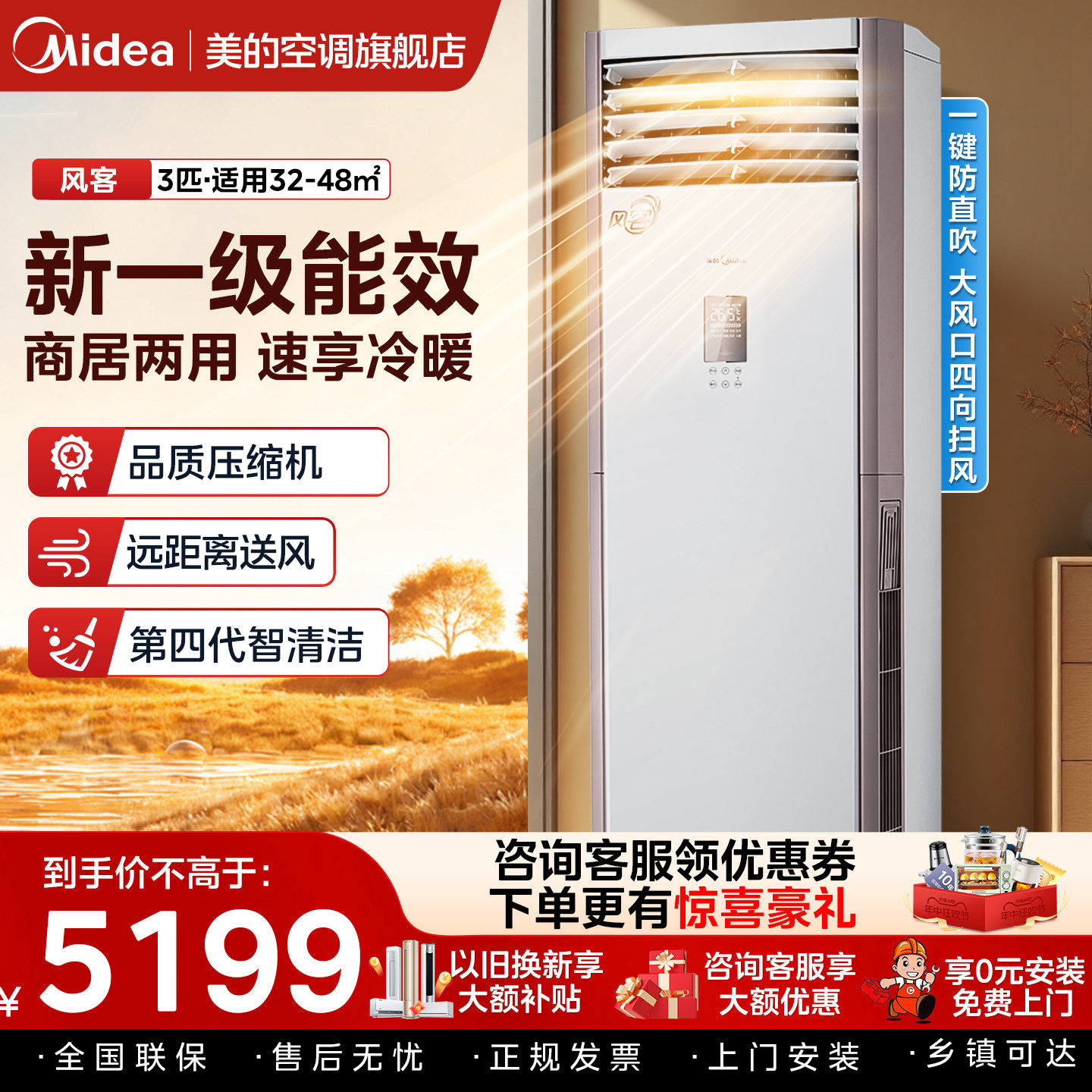 美的3匹风客一级立式方柜机商用家用冷暖两用变频空调正品旗舰店