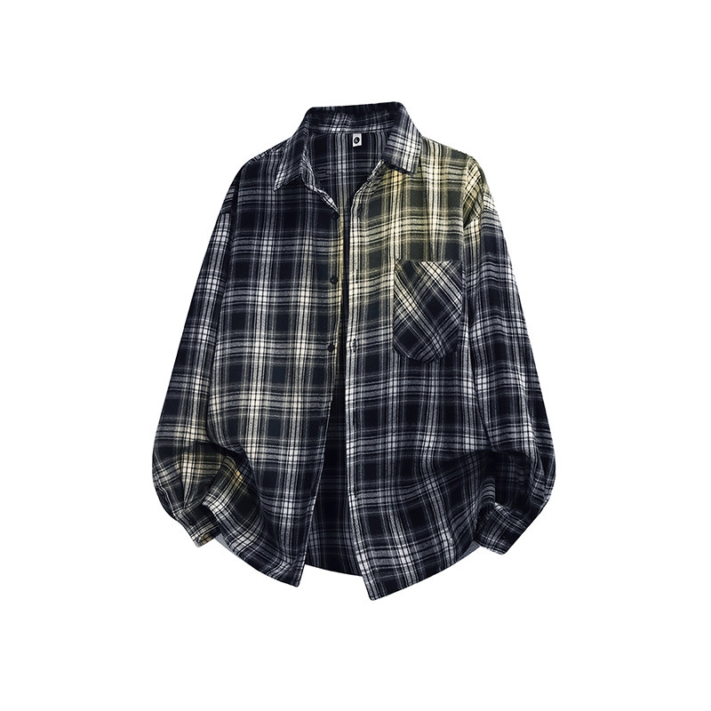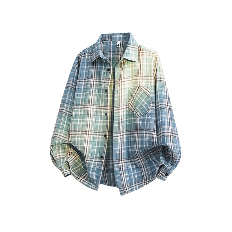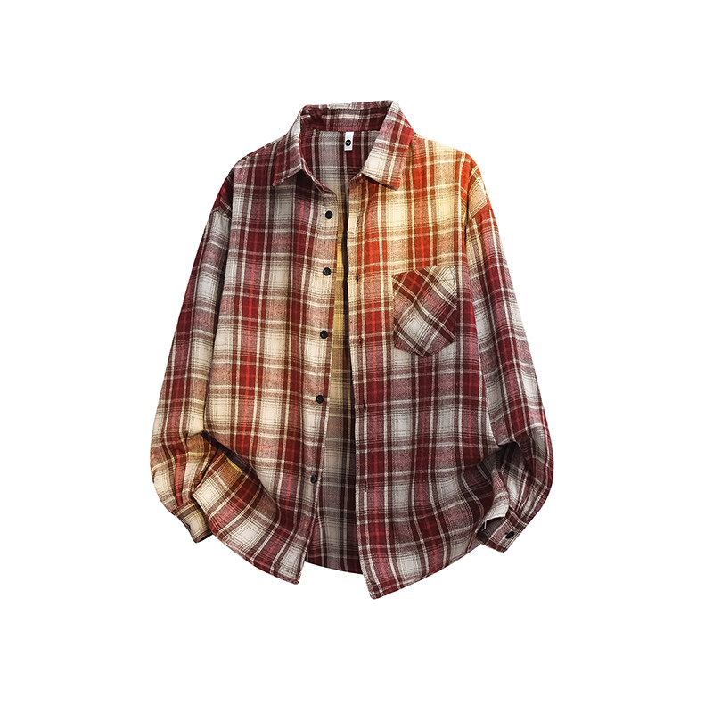 查尔斯桃心美式长袖衬衫男士春秋夏季薄款宽松休闲格子衬衣女外套