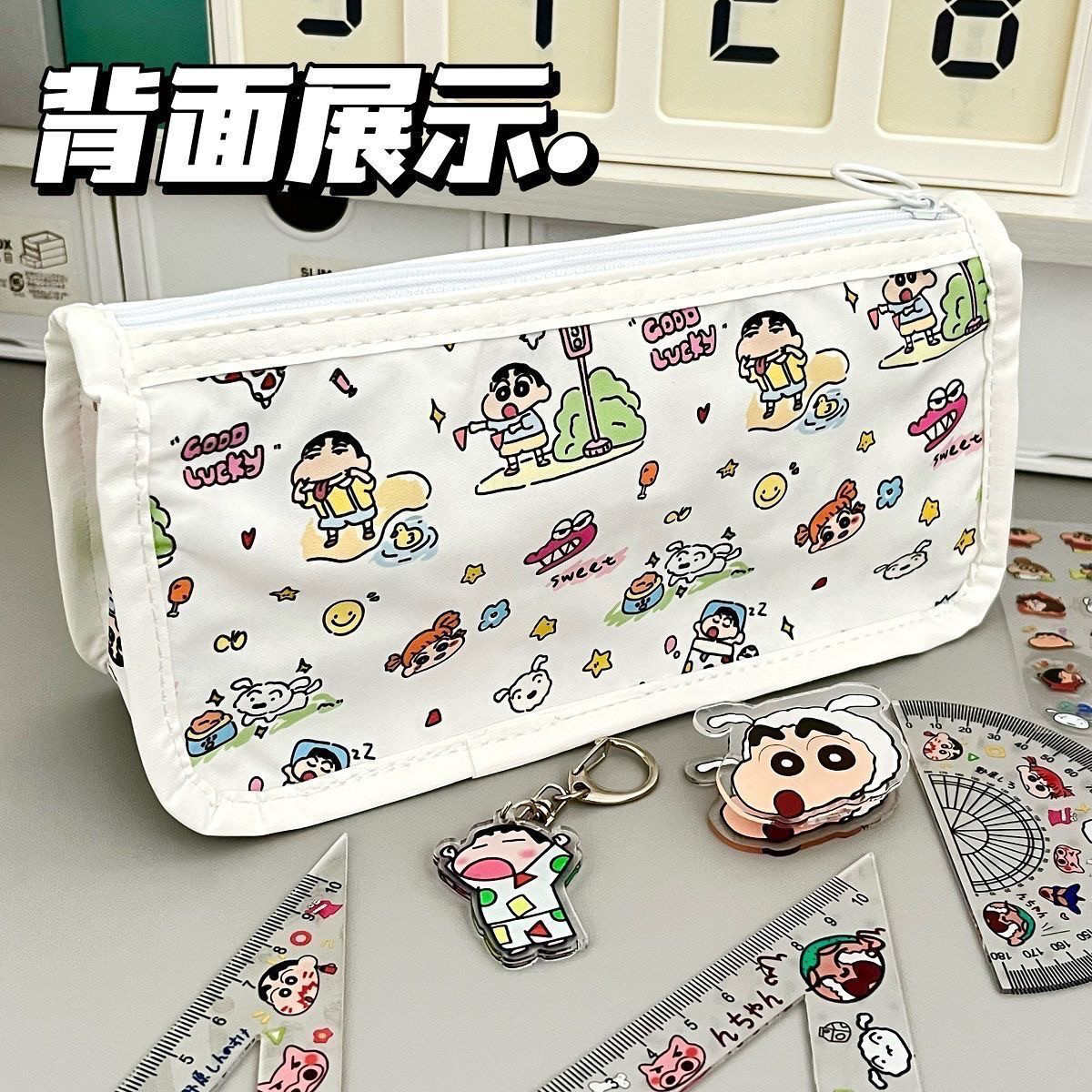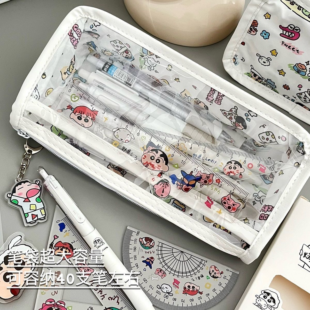 小红书同款卡通蜡笔小新透明笔袋ins高颜值学生大容量文具收纳袋