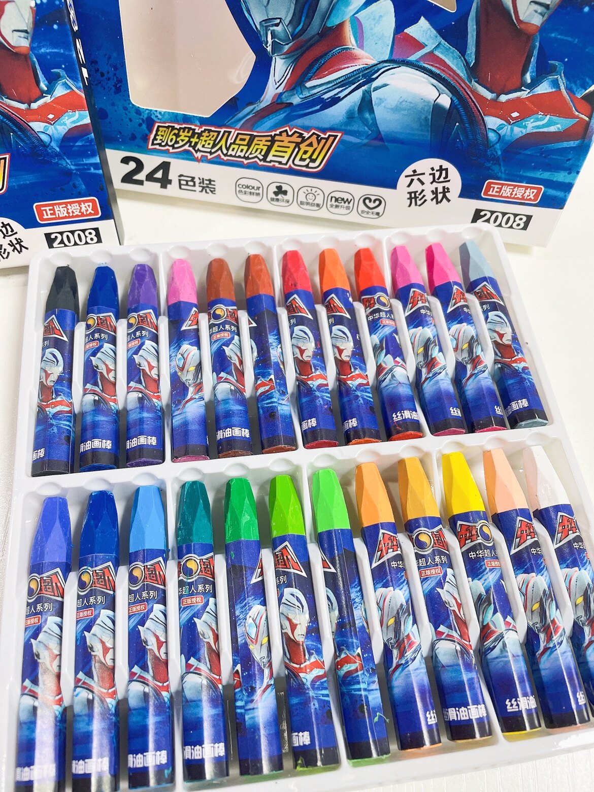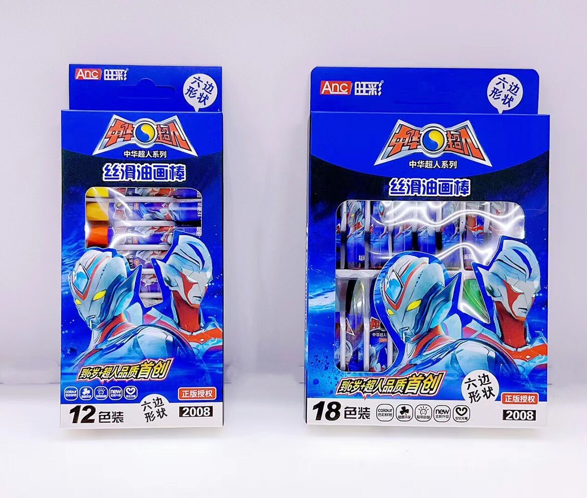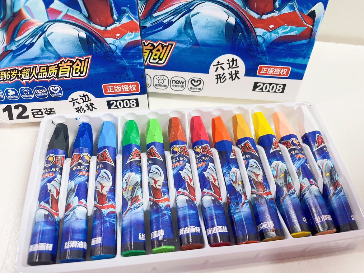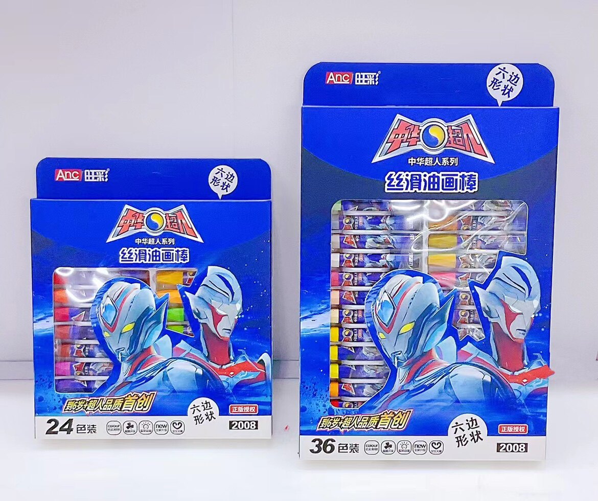 正版超人油画棒12-18-24-36色儿童益智美术绘画蜡笔丝滑不脏