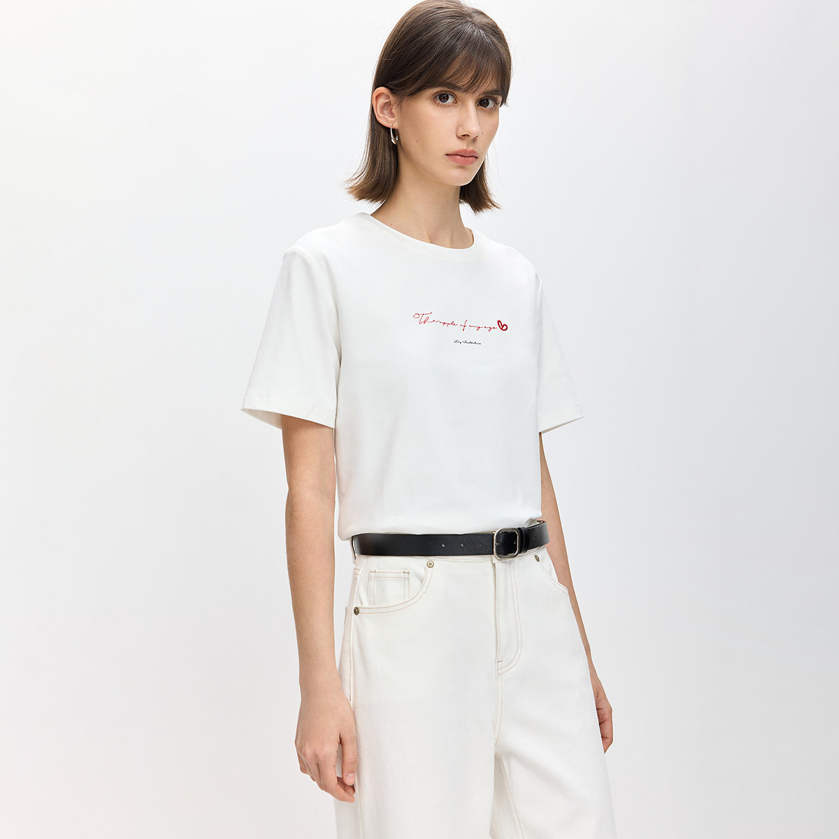 陈都灵丨凉感T森马短袖T恤女修身纯色基础夏季新款圆领白色女装