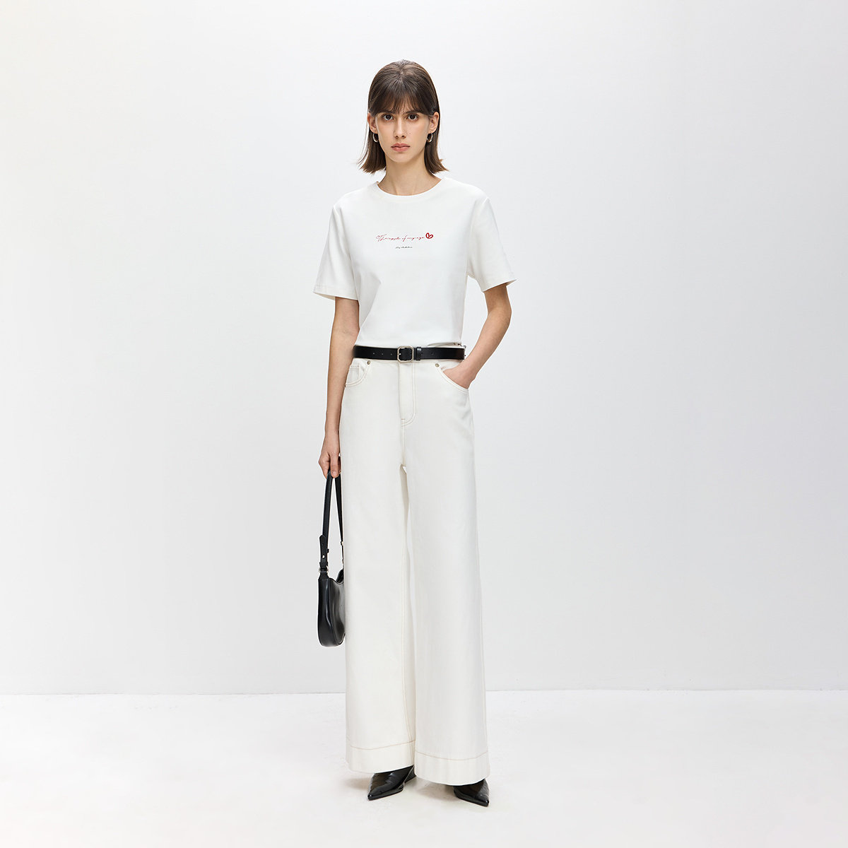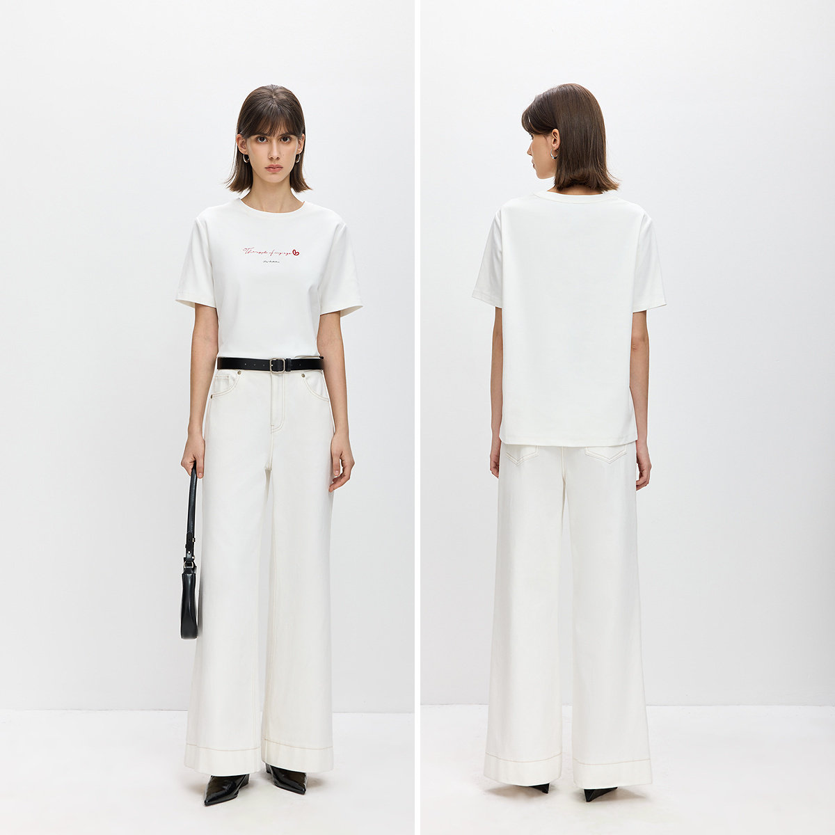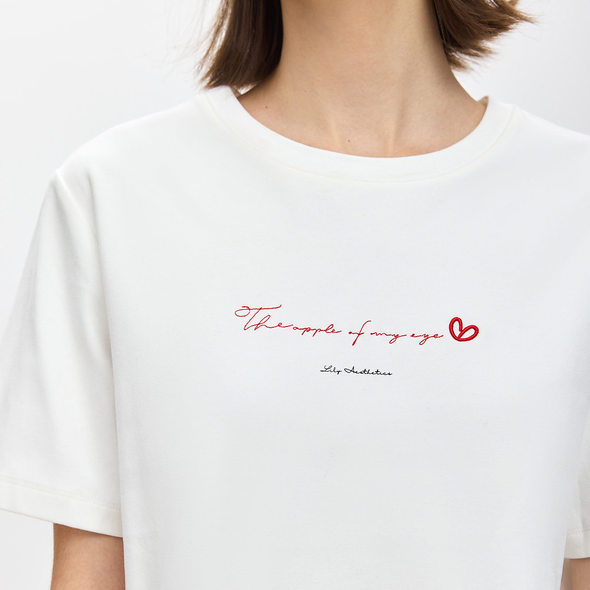 LILY2026春新款撞色绣花磨毛暖感休闲百搭通勤白色短袖T恤上衣女