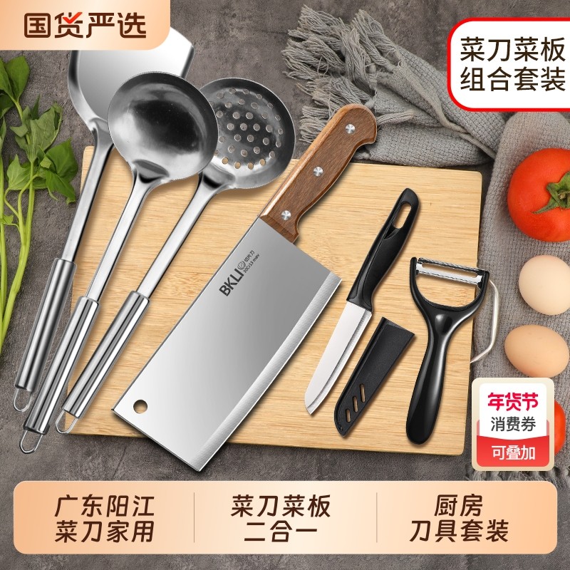 广东阳江刀具套装菜刀菜板二合一家用厨具全套切片刀砧板六件套