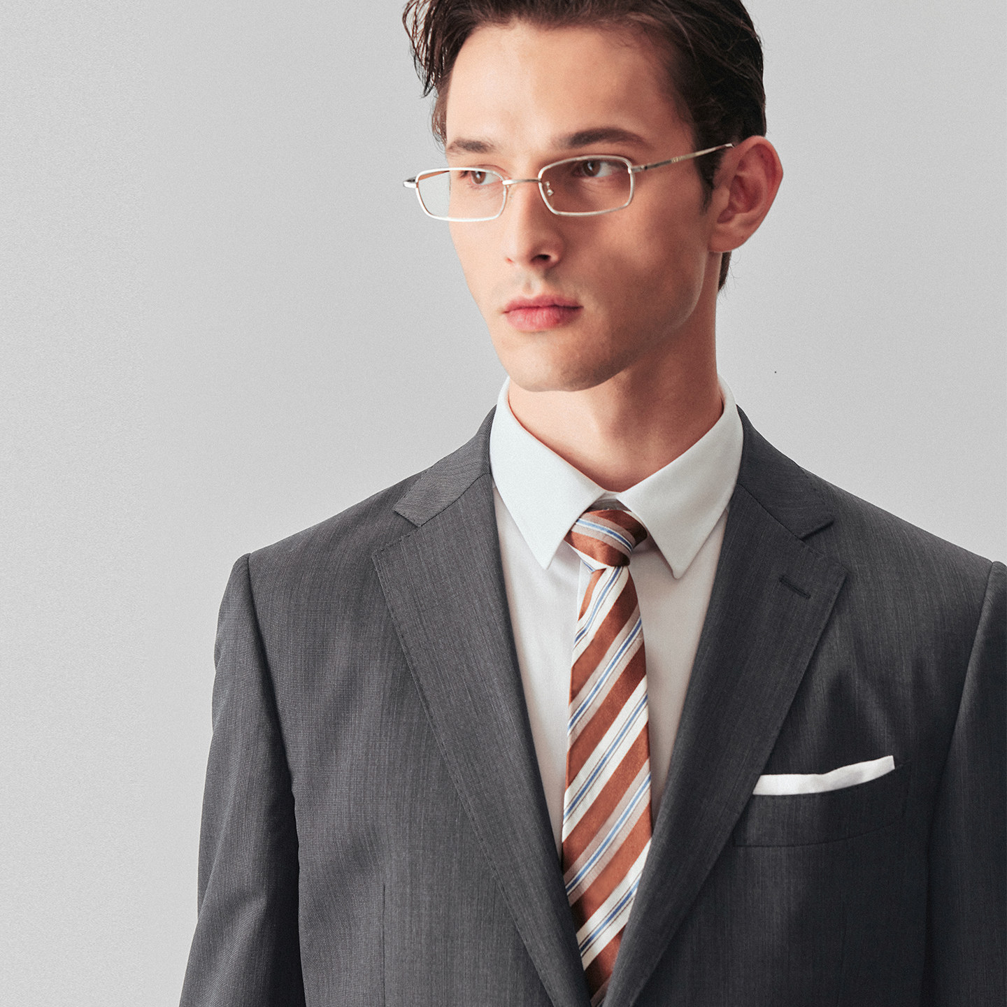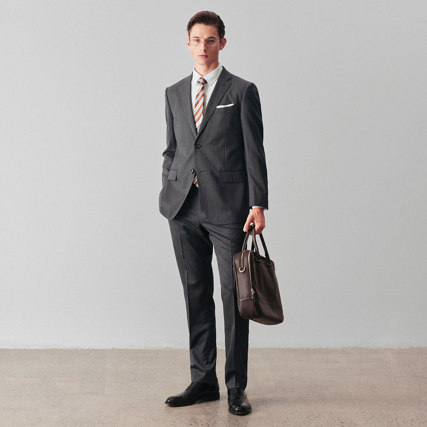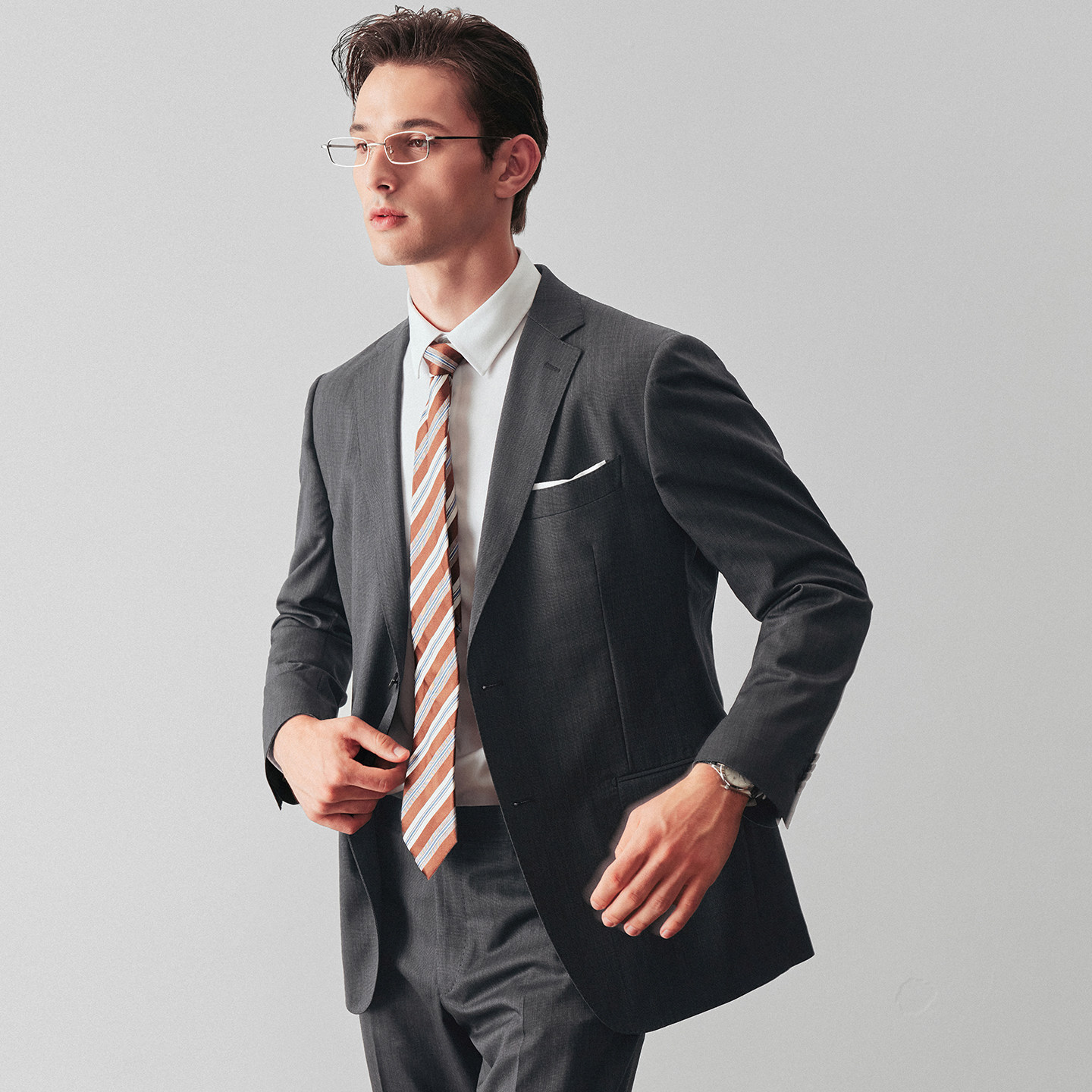 柏品纯羊毛商务西服套装男肌理纹职业正装结婚礼新郎通勤上班西装