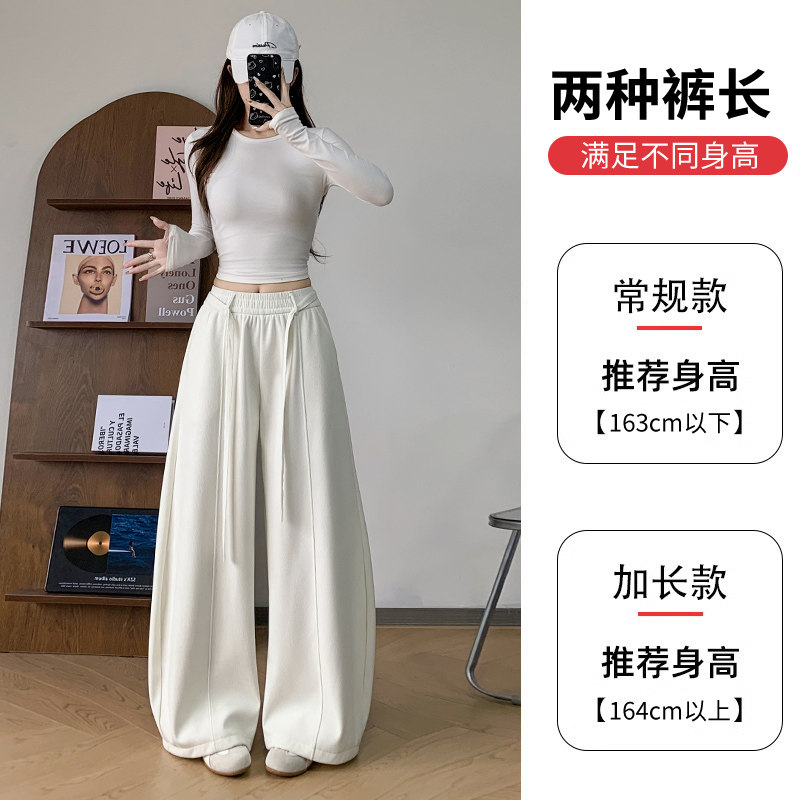 SIINSIIN加绒卫裤女2025新款阔腿运动裤休闲长裤冬季白色直筒裤子