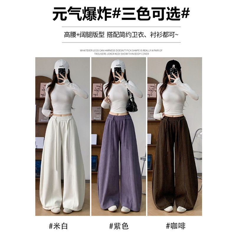 唐狮DESSO秋冬新款糯米裤高腰垂感宽松加绒直筒阔腿裤