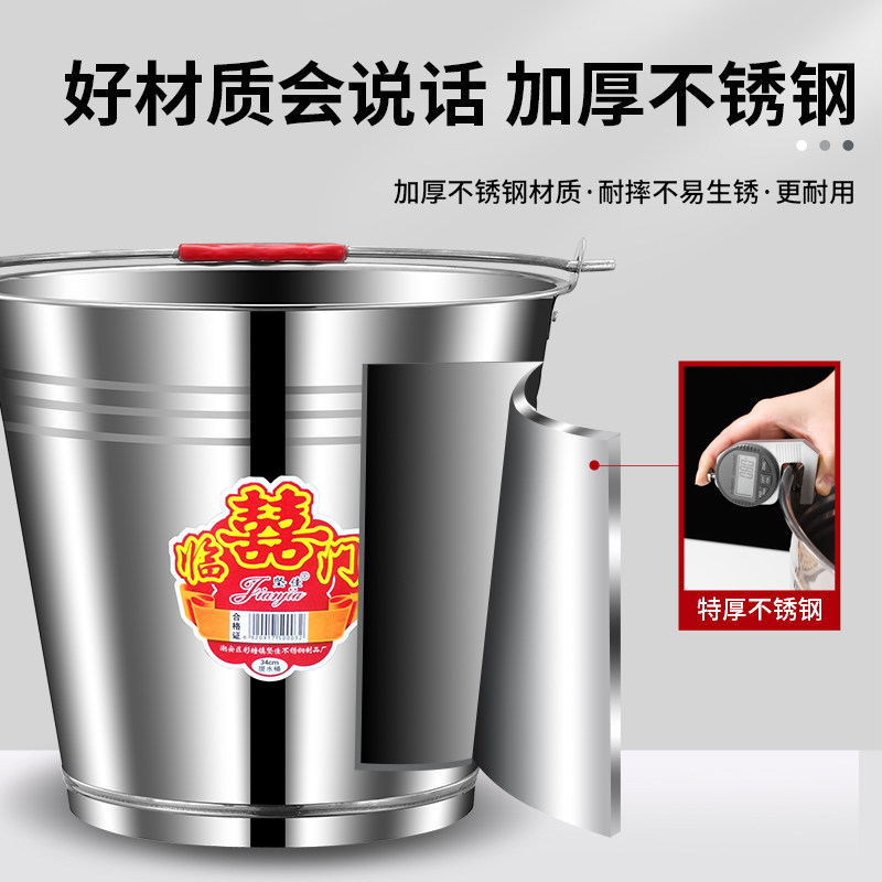 不锈钢水桶家用带盖油桶储水冰桶铁桶提水桶收纳特厚耐用提手厨房
