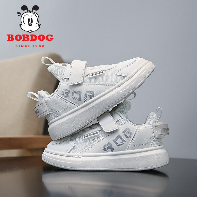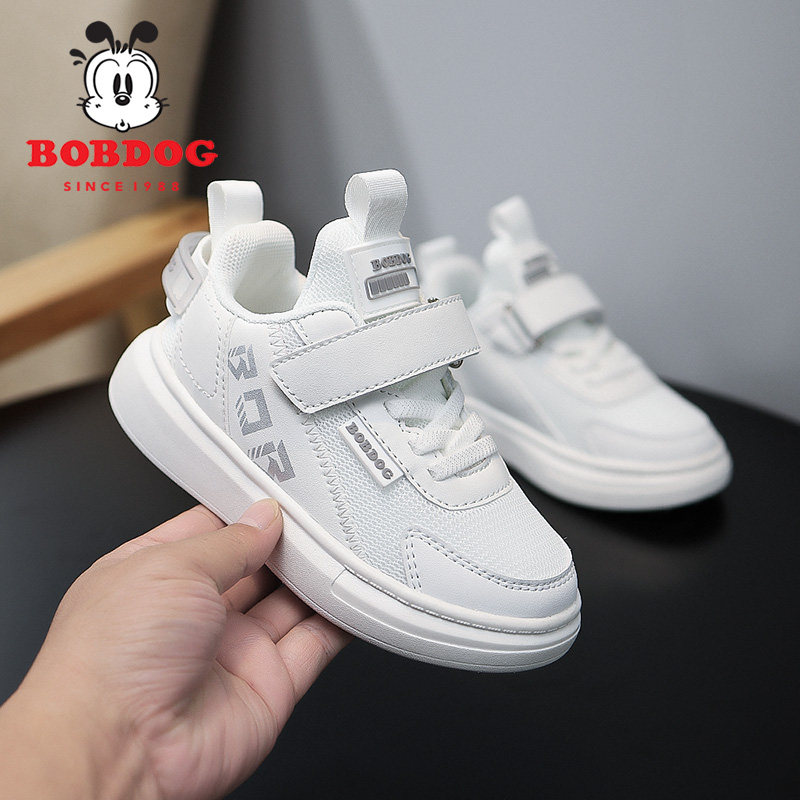 巴布豆儿童运动鞋子2025春秋新款网面透气板鞋软底休闲男童鞋白色