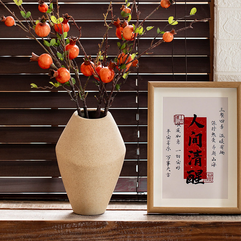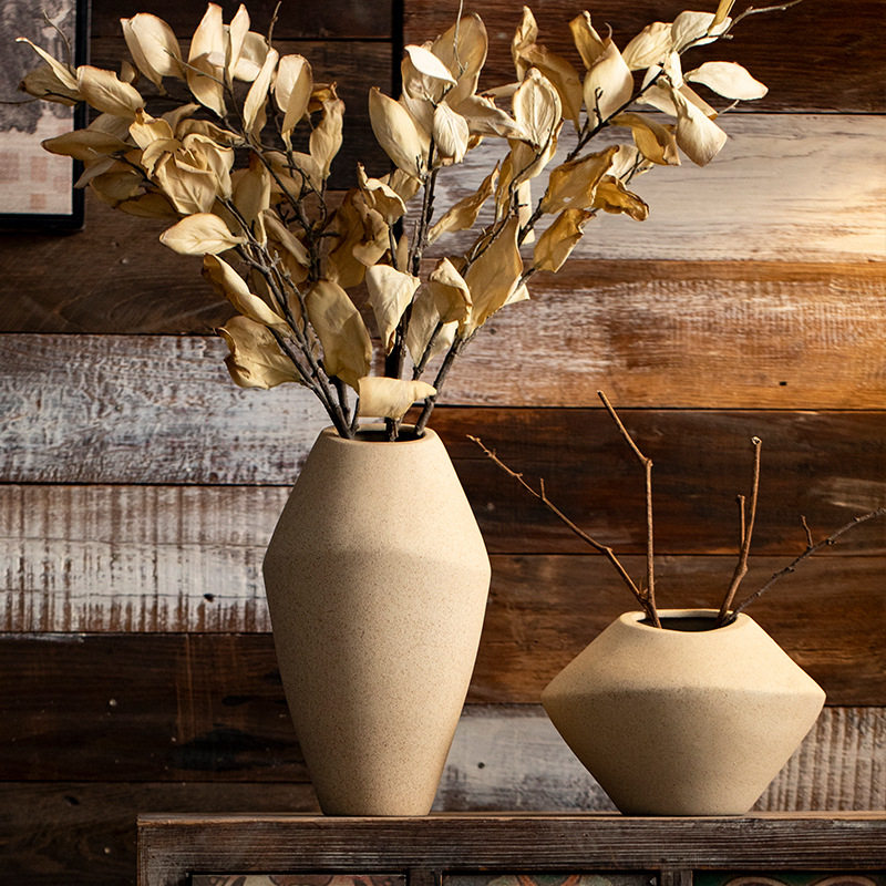 景德镇复古素胚陶瓷花瓶新中式风格家居客厅装饰摆件干花粗陶花器