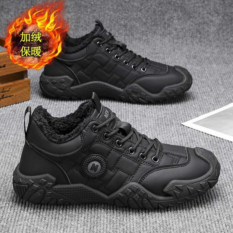 2025冬季新款户外休闲运动男鞋潮流百搭加绒加厚保暖棉鞋低帮板鞋