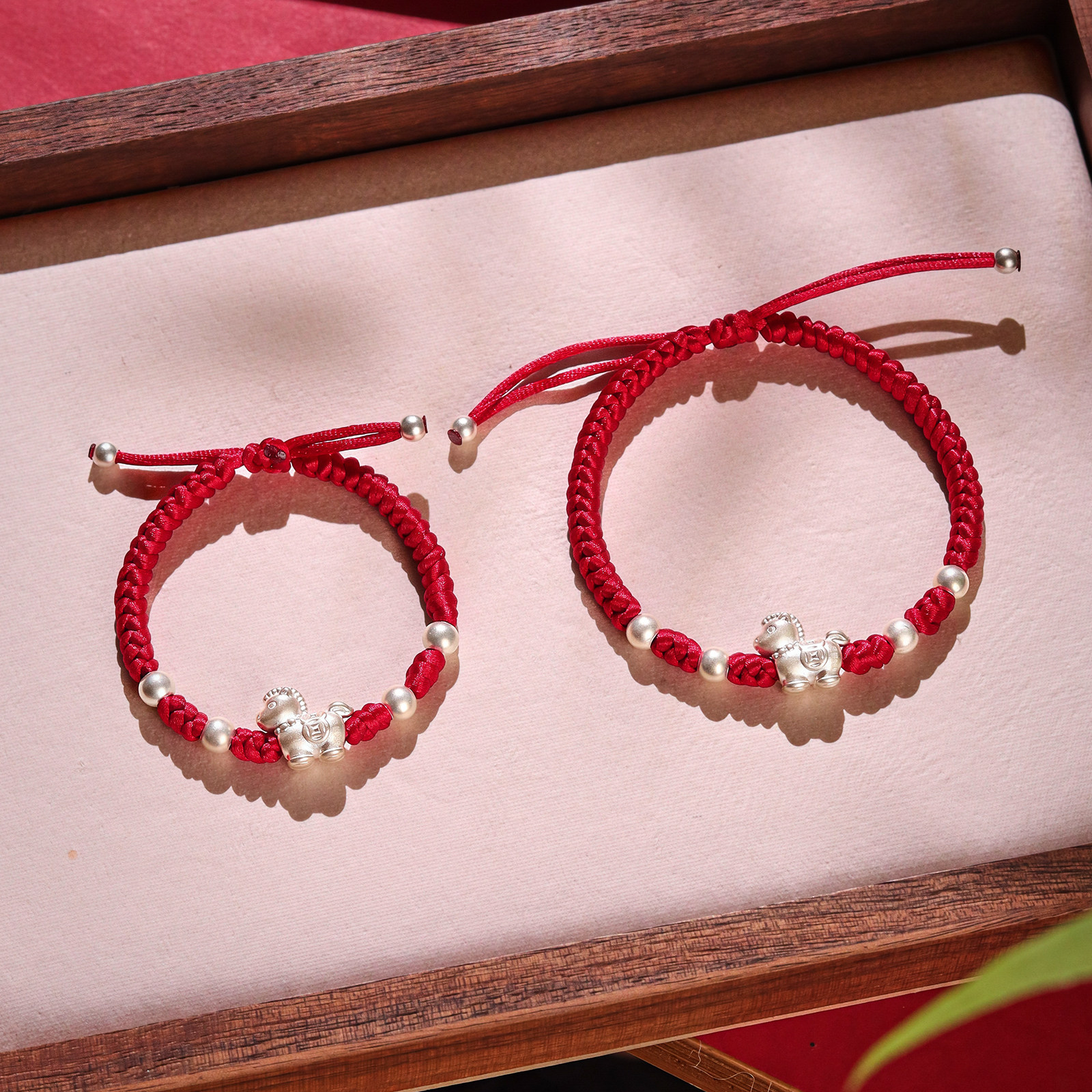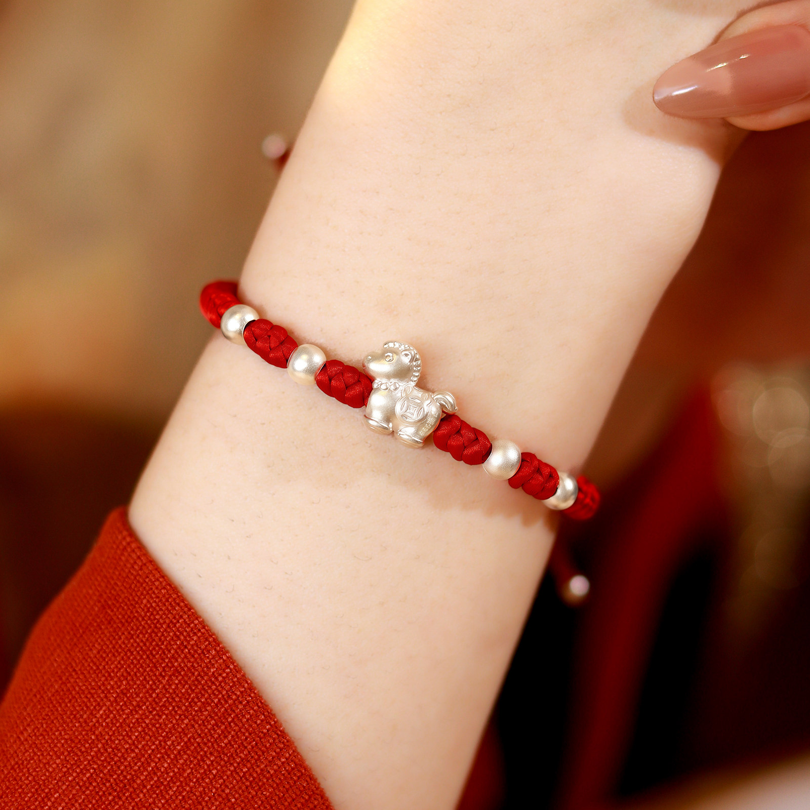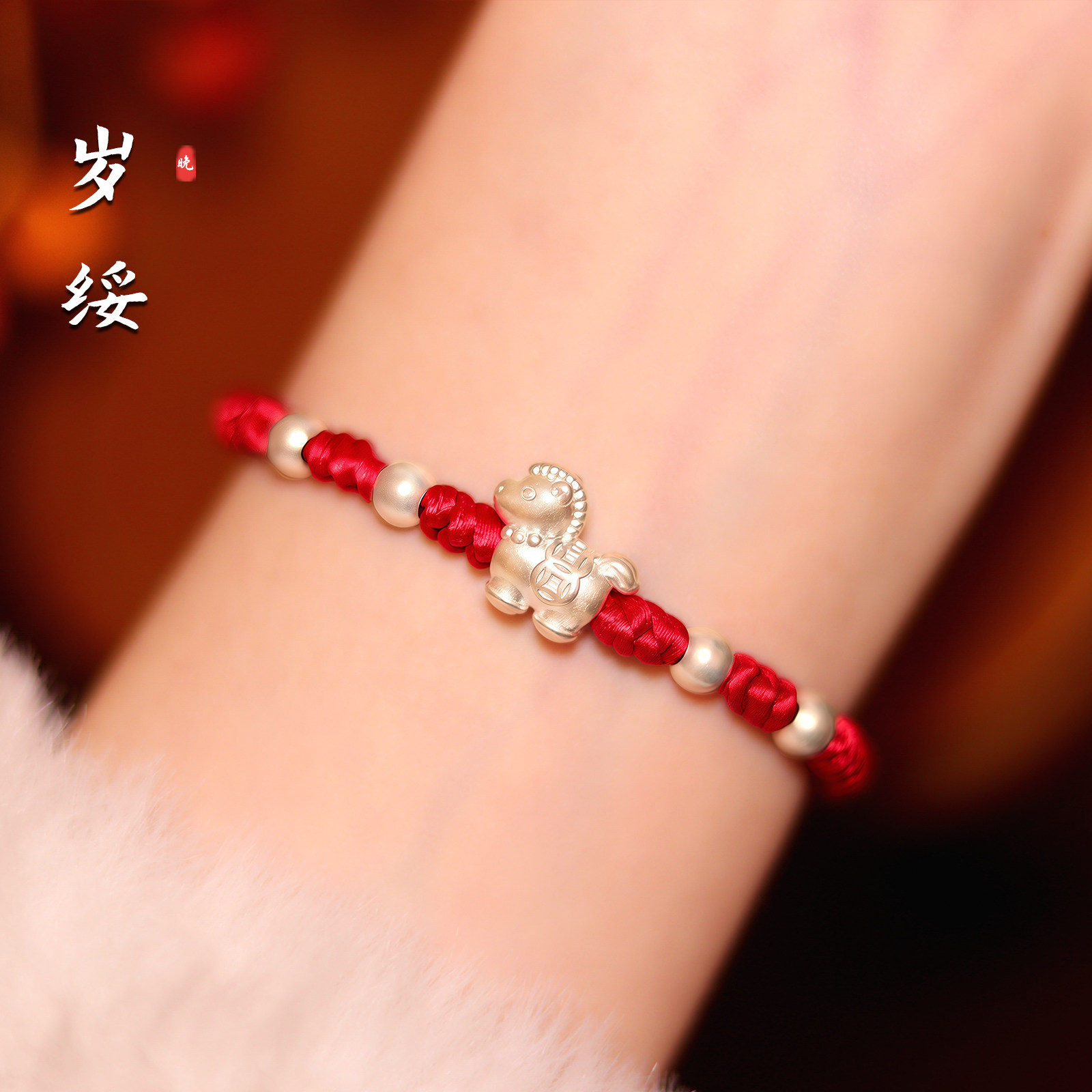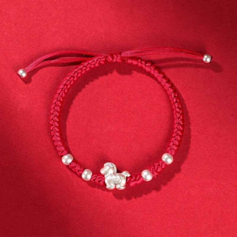 马年本命年红绳纯银手链足银999男女生生肖马礼物可调节编织如意