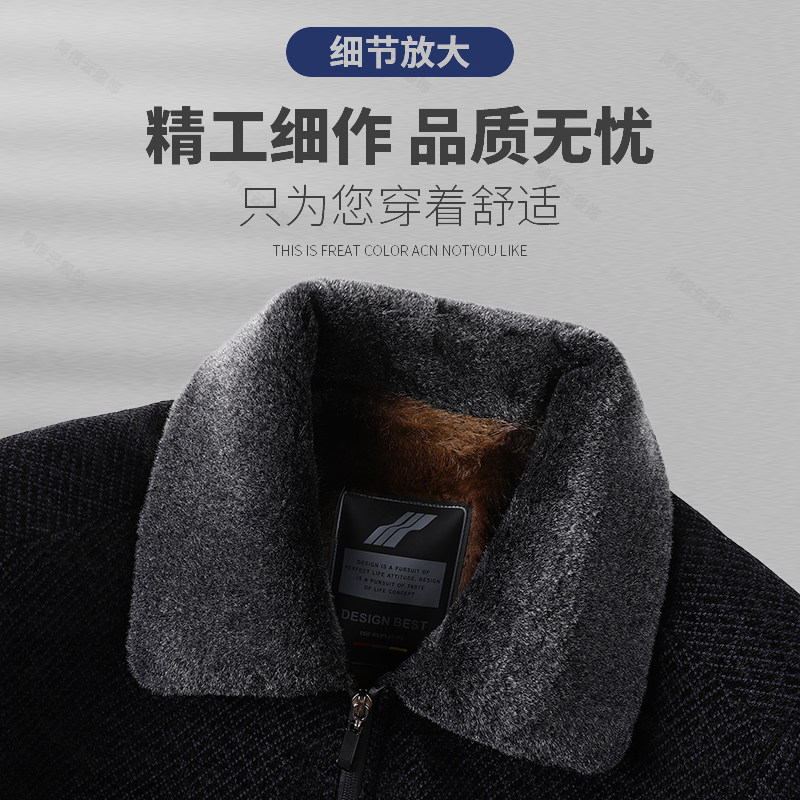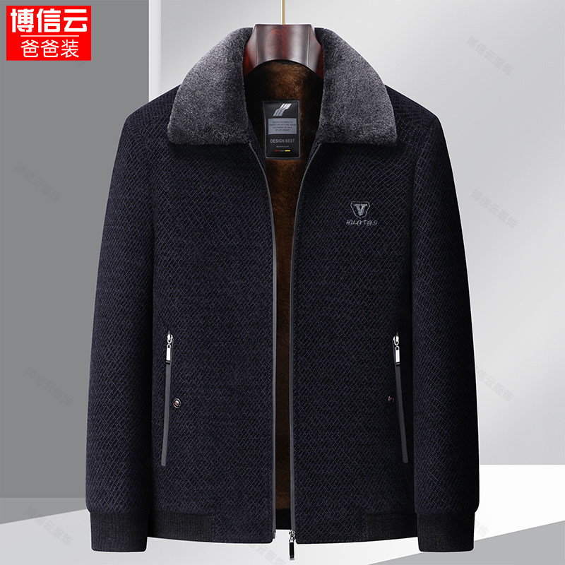 中老年男装雪尼尔外套冬季中年男士毛呢棉衣爸爸冬装加绒加厚棉袄