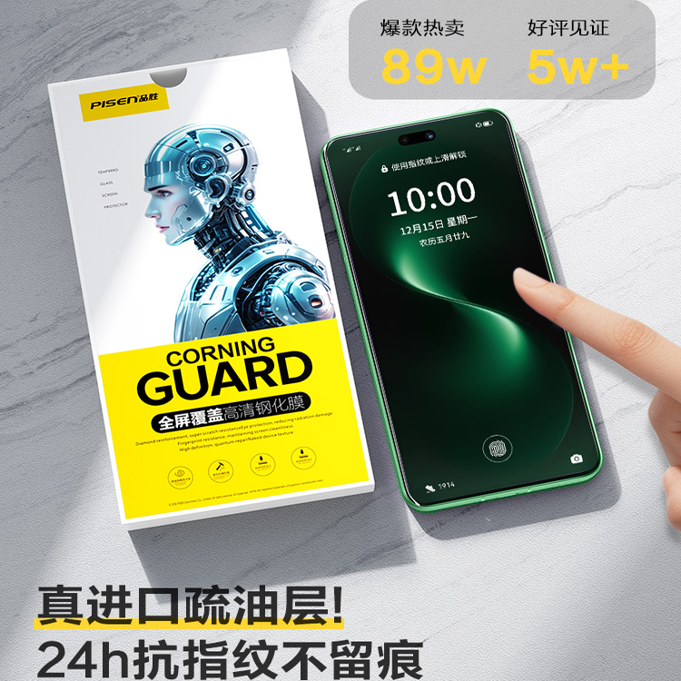 【康宁玻璃】品胜适用华为nova15ultra钢化膜15pro手机膜nova15AR膜新款nova14超声波秒解锁13保护12抗反射11