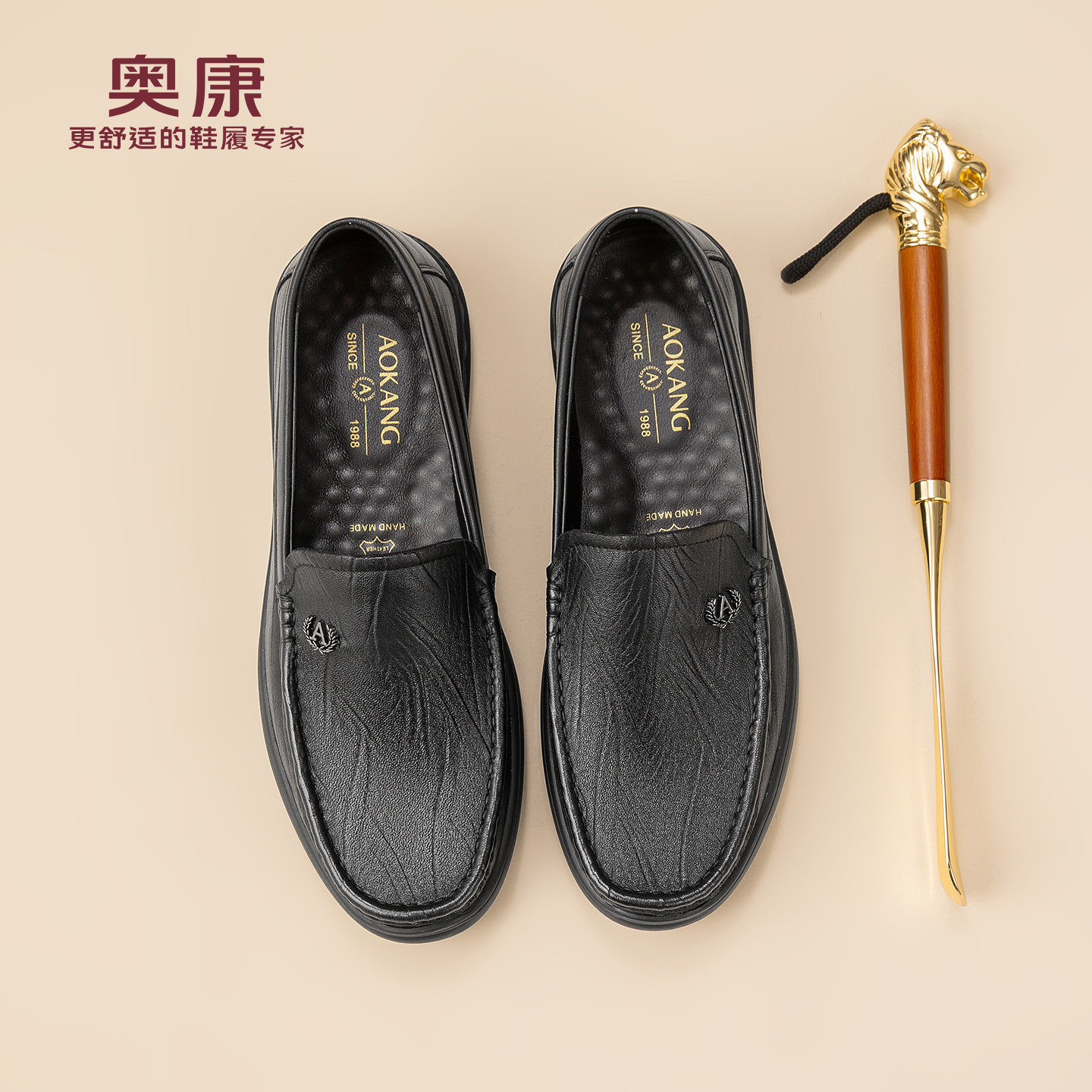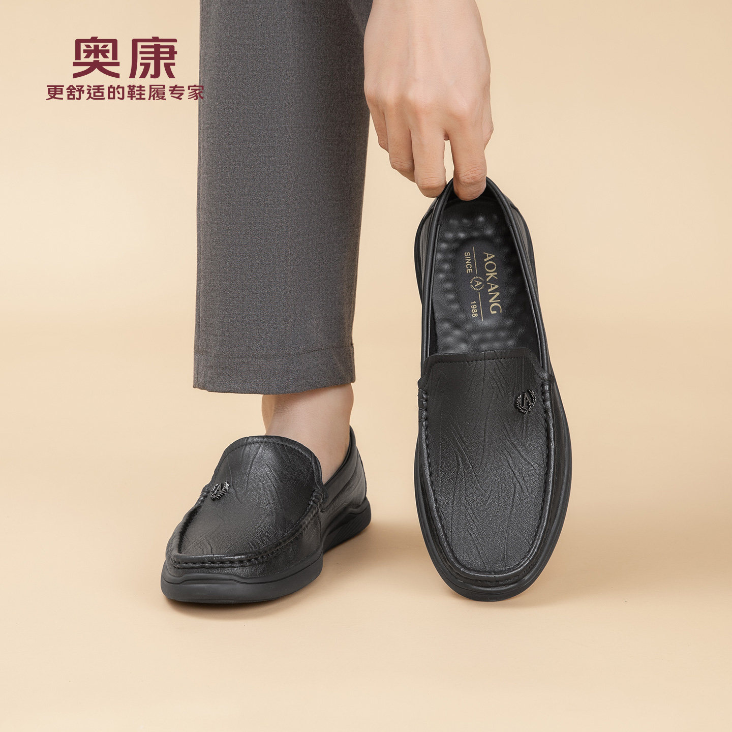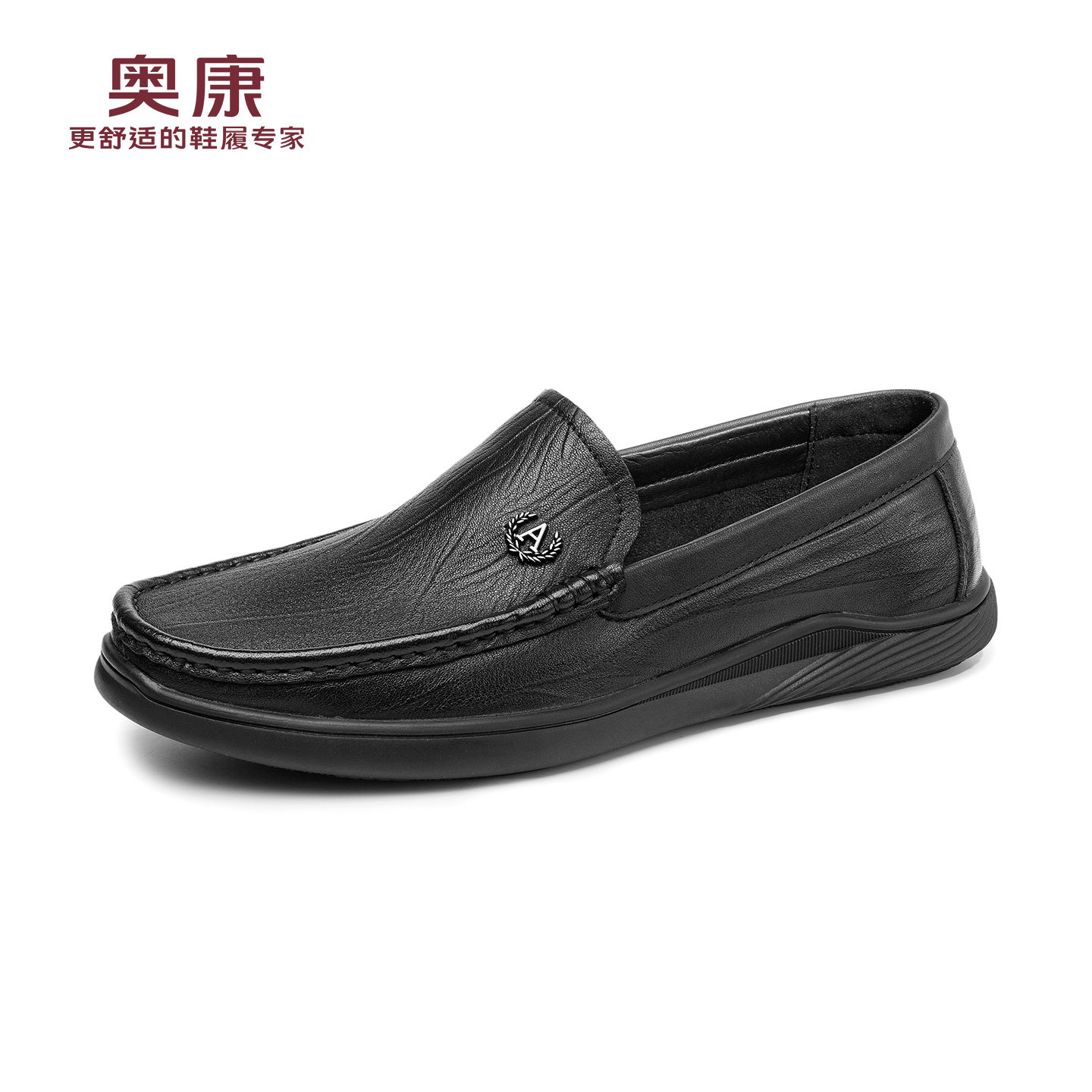 奥康春秋季商务休闲皮鞋男真皮软底乐福鞋舒适一脚蹬套脚爸爸鞋