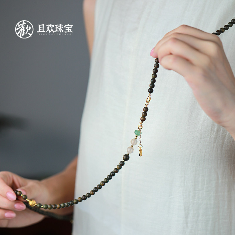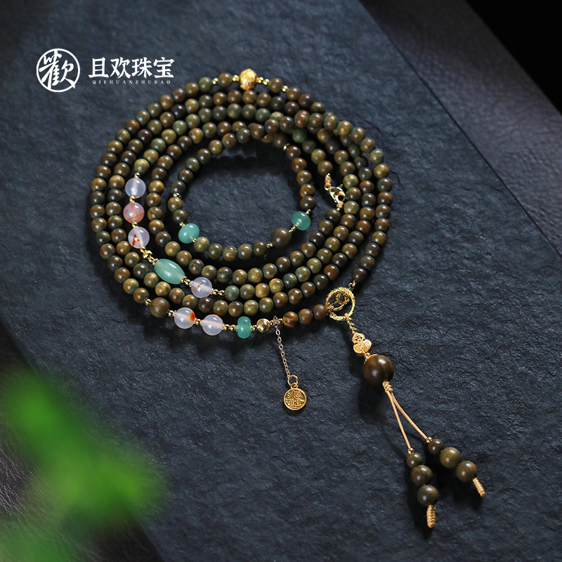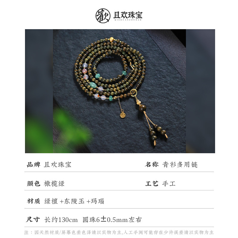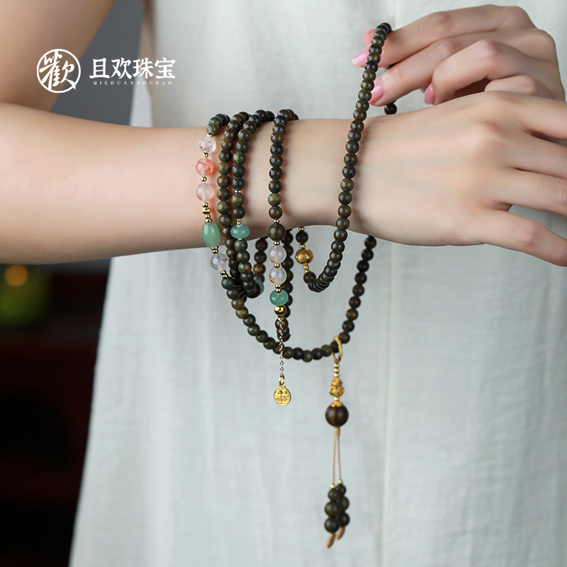 游思集绿檀木多圈手串女天然水晶冰飘南红东陵玉手链多圈木质念珠