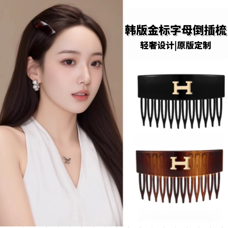 韩国新款H字母齿梳插梳边夹简约百搭高级感蓬松公主头刘海倒头饰