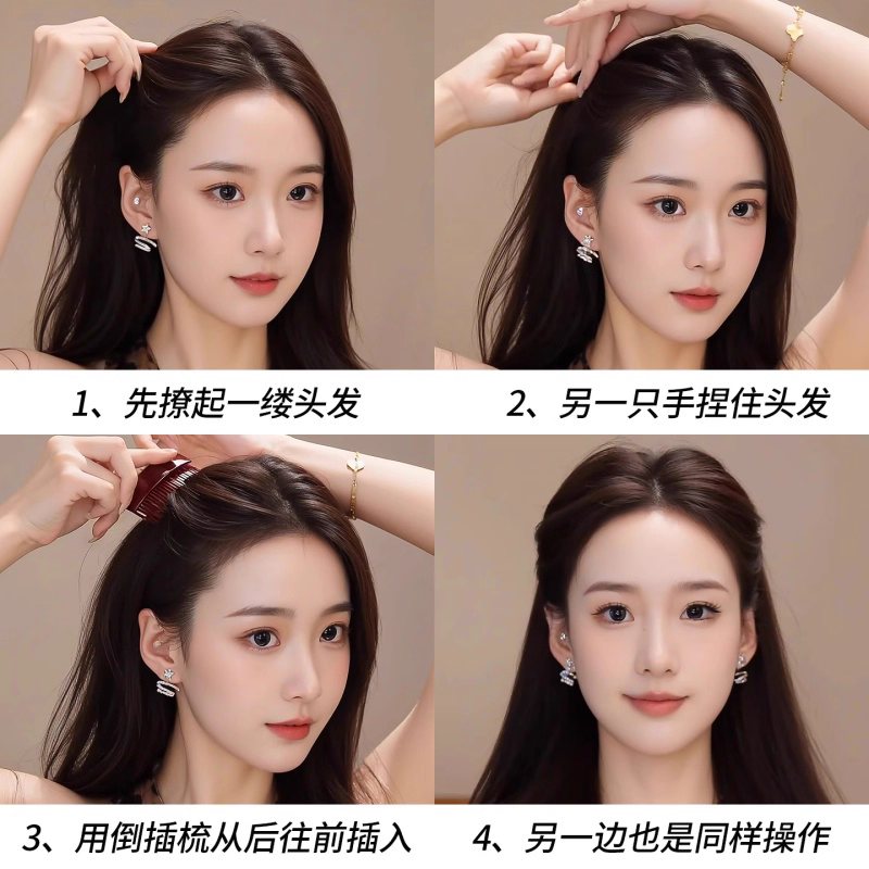 懒人盘发神器丸子头四齿插梳发梳发簪倒插发卡U形发夹造型头饰女