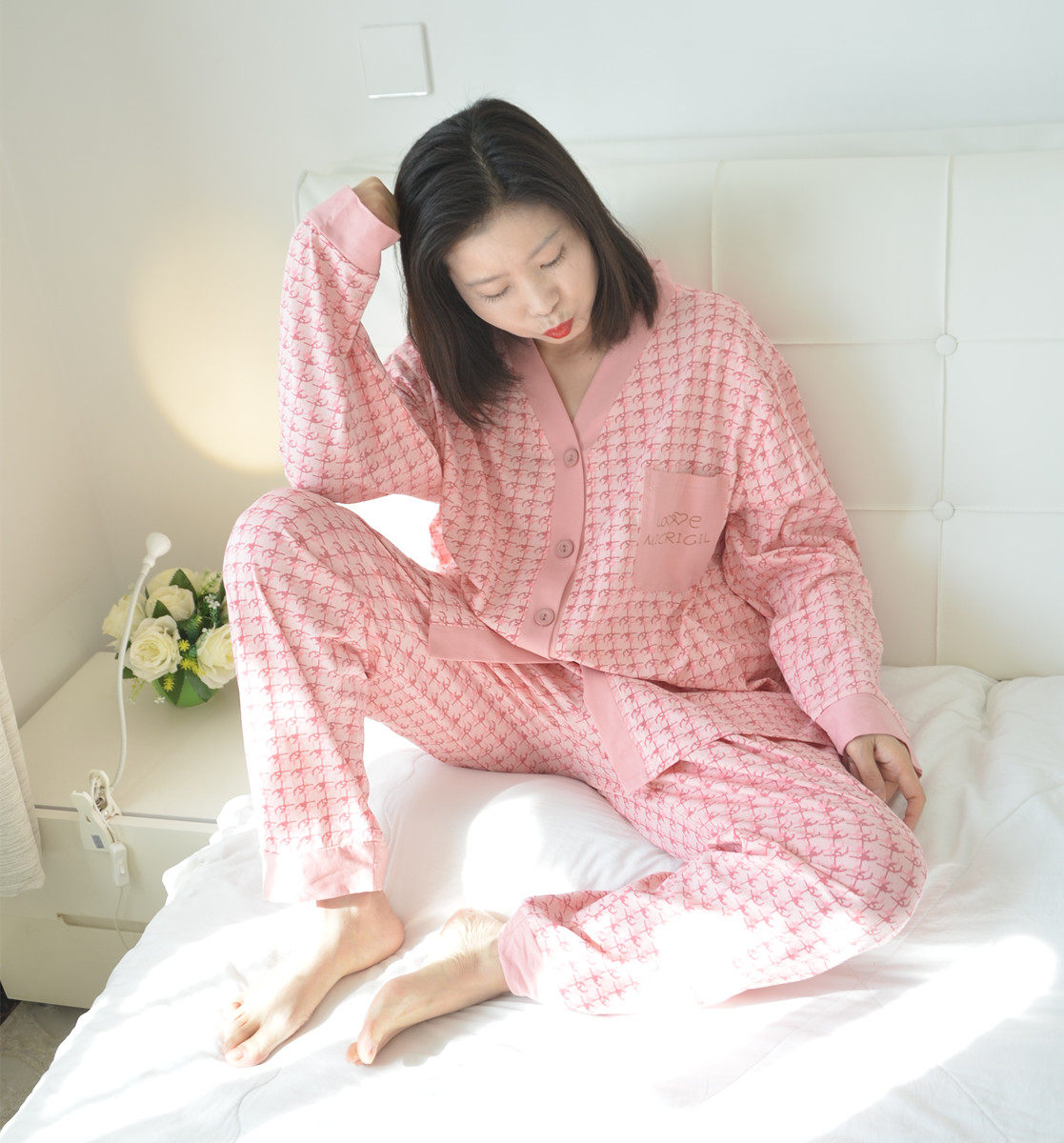 春季女式V领开衫全棉加肥加大码长袖长裤胖MM睡衣休闲家居服200斤