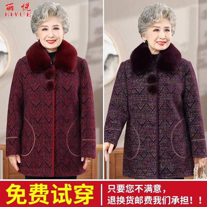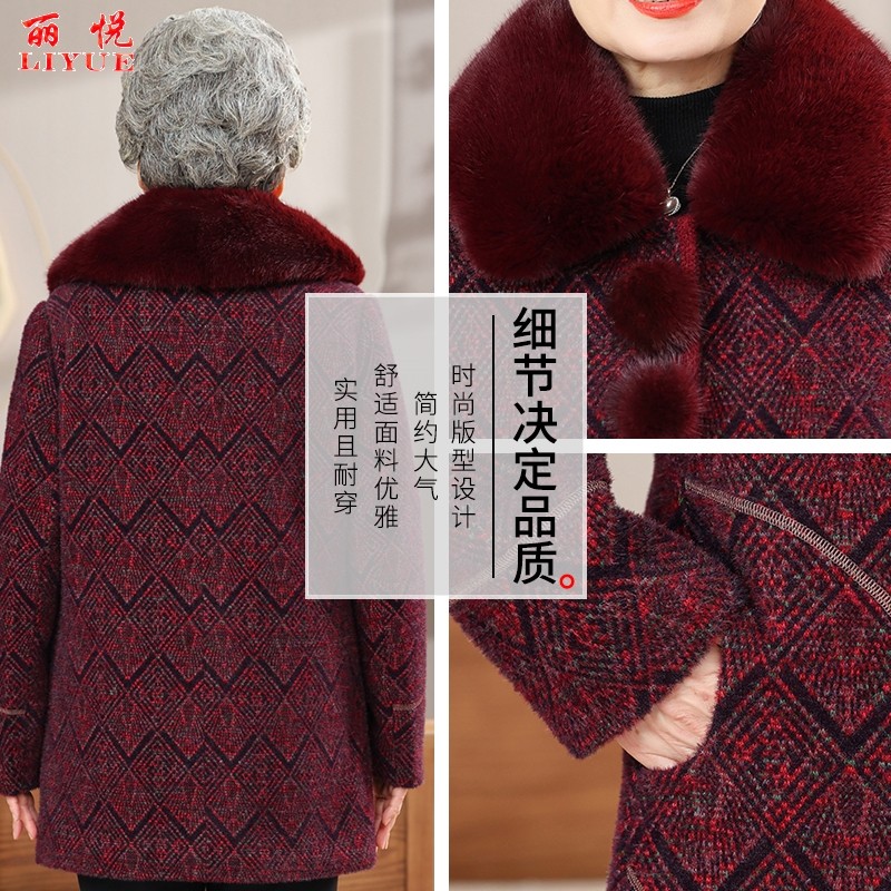 中老年人冬装女水貂绒大衣妈妈加绒加厚保暖奶奶毛领外套中长款