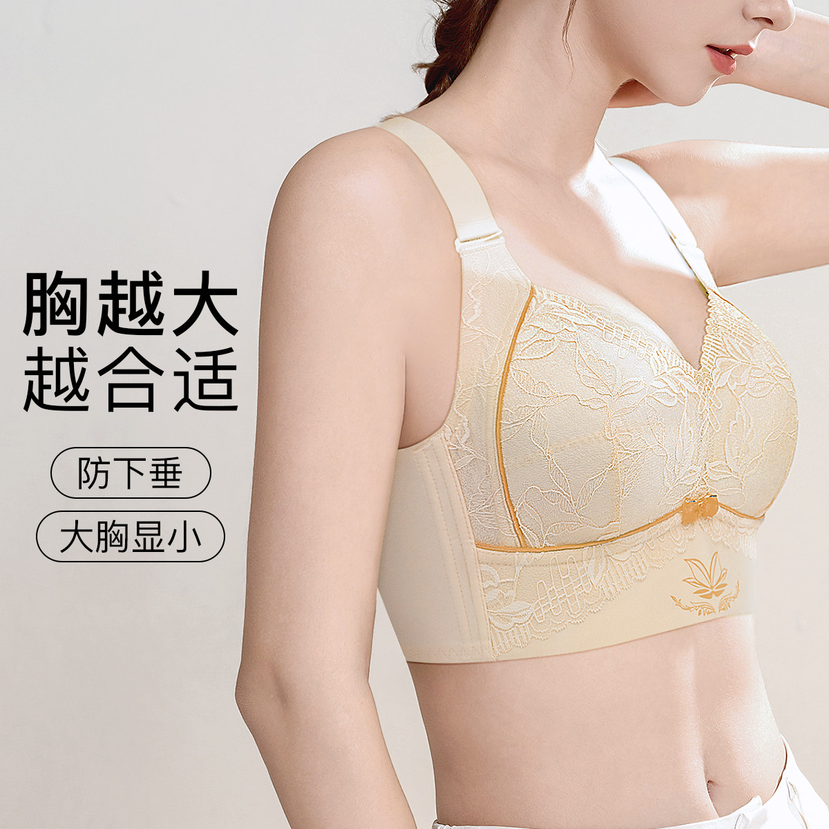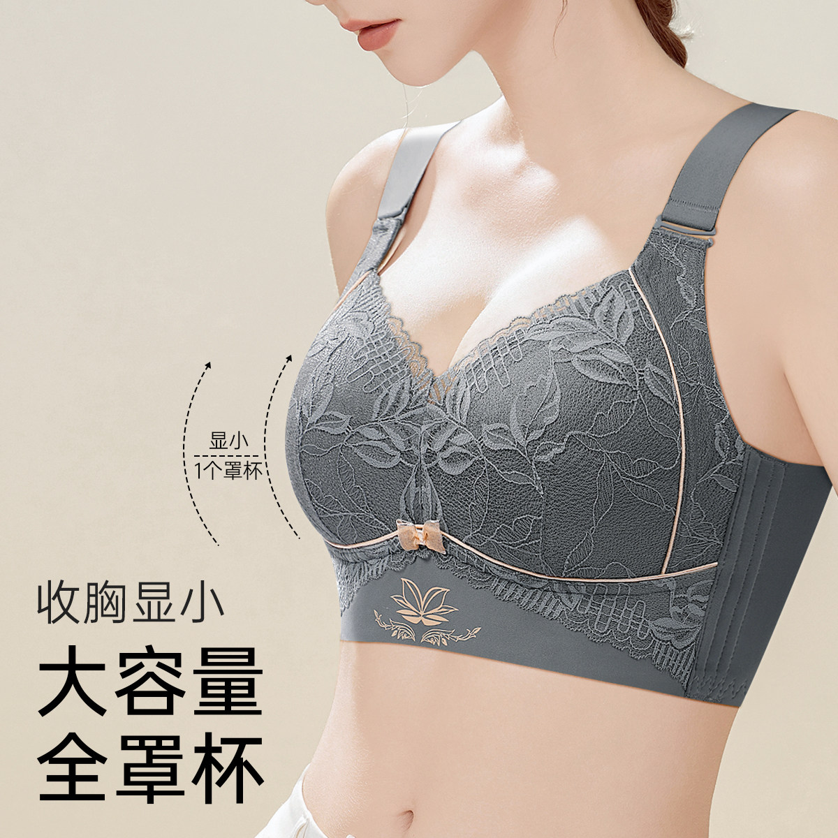 润微大胸显小包容显瘦夏季薄款内衣女聚拢防下垂收副乳调整型文胸