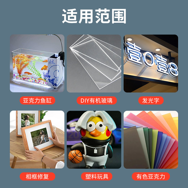 强力粘亚克力板有机玻璃鱼缸透明无影无痕胶